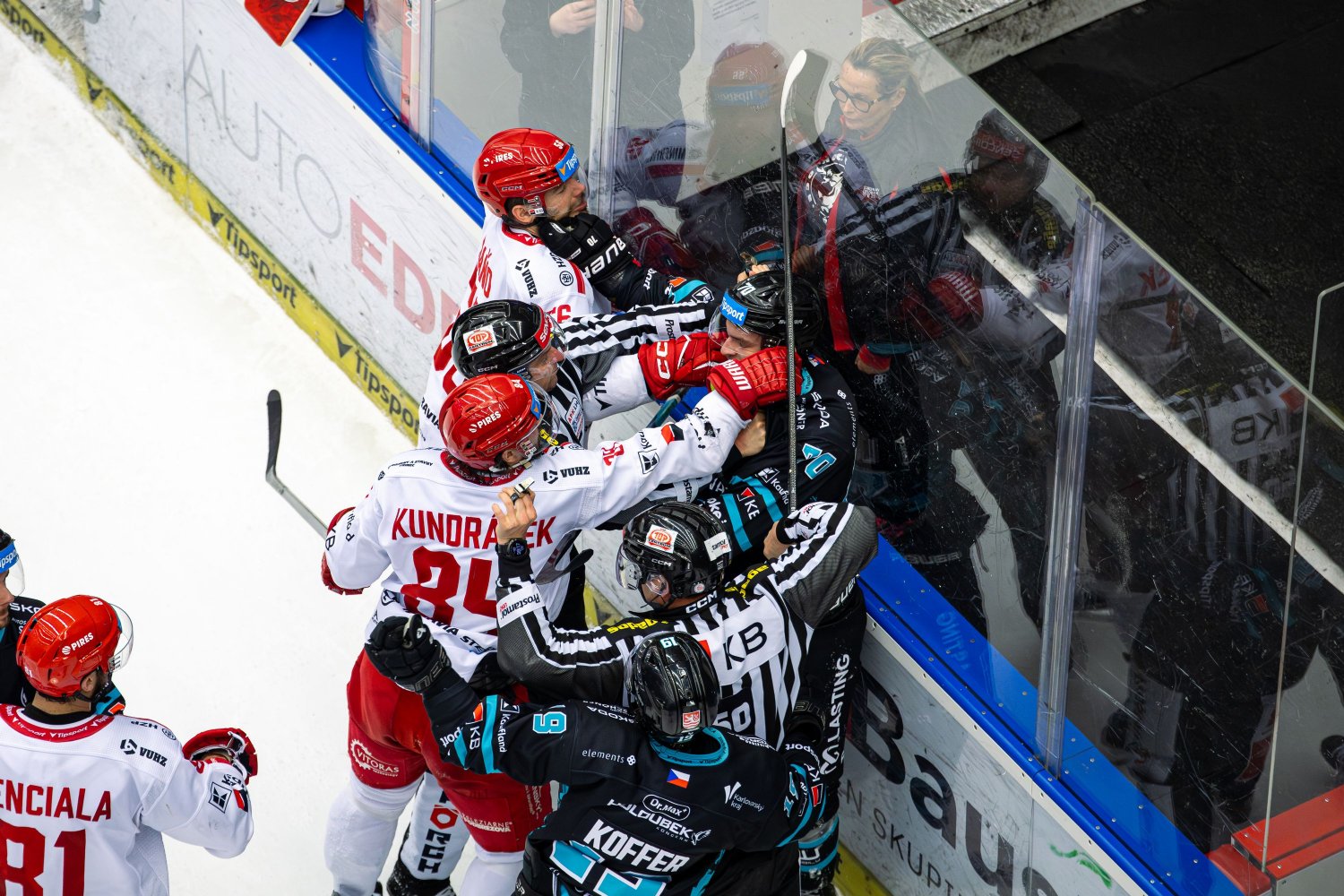 Na konci třetiny byl po potyčce vyloučen Daňo, domácí tak započali třetí periodu v přesilové hře. Třinečtí oslabení přečkali bez úhony, po návratu Daňa na led se okamžitě vrhli do útoku a Daniel Kurovský mohl snížit na rozdíl jediné trefy, z bezprostřední blízkosti ale trefil jen nataženého Frodla.