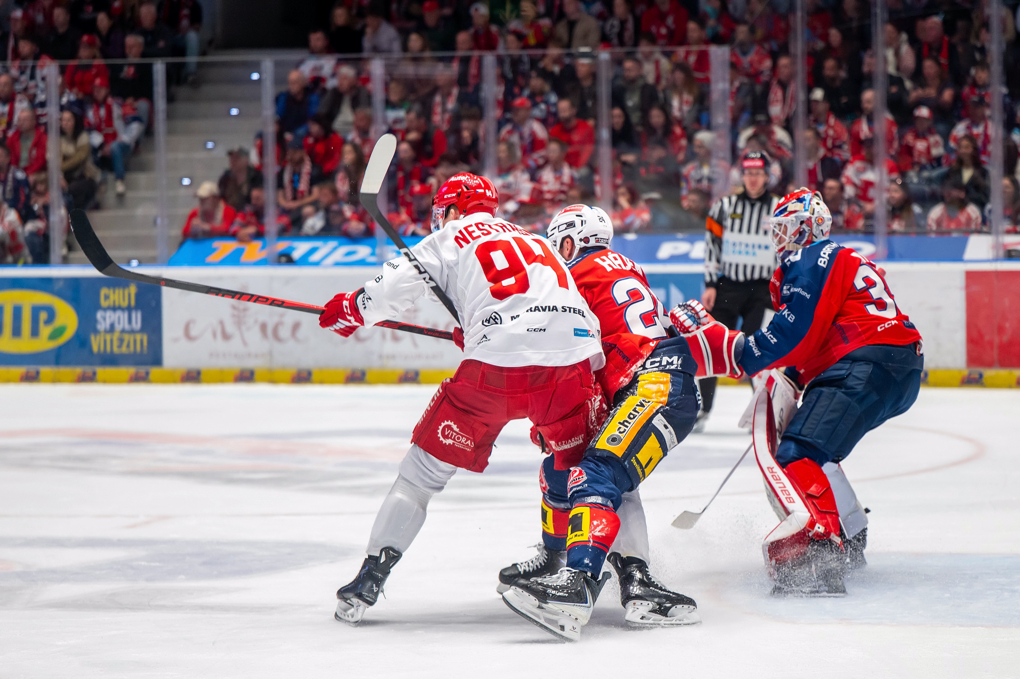 Tři a půl minuty ze třetí části potřebovali Oceláři, aby srovnali stav. V prvních dvou minutách přitom Slezané nehráli moc dobře, první formace pak ale předvedla luxusní kombinaci, Andrej Nestrašil z bezprostřední blízkosti usměrnil kotouč za záda bezmocného Willa po kombinaci bratří Kovařčíků.