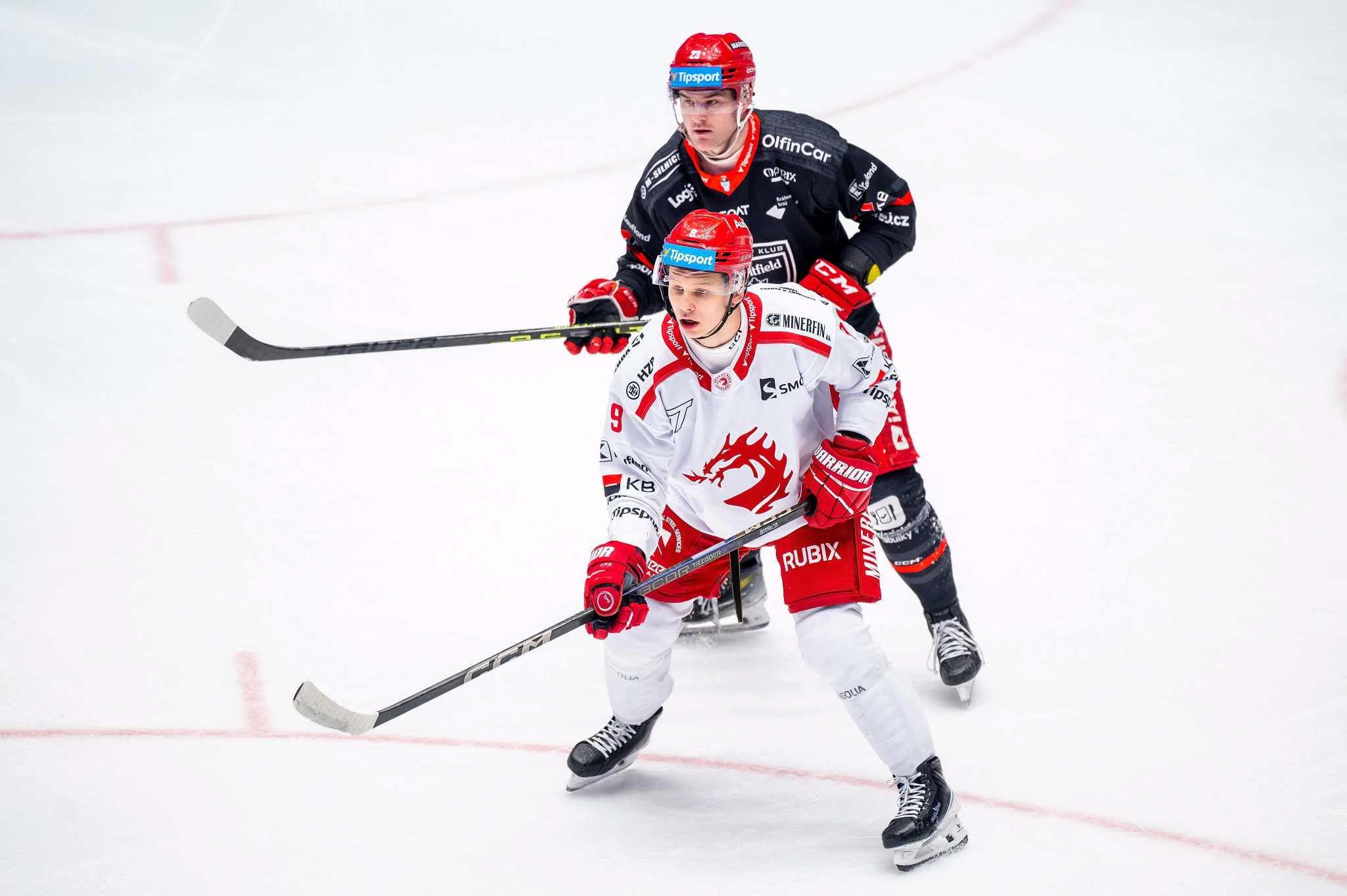 Ve velké rychlosti najel do útočného pásma Kusý, který i sám vystřelil, Kacetl musel být v pohotovosti. Na druhé straně udeřil znovu drak. Kovařčík vybídl volného Andreje Nestrašila, který v předbrankovém prostoru procedil kotouč mezi betony Kasala. Mimochodem, tohle byla třetí asistence Kovařčíka v zápase, sám Nestrašil rovněž zapsal třetí kanadský bod v utkání. Dvě minuty a devět sekund před třetí sirénou byl vyloučen Marinčin za držení, Královéhradečtí hráli ještě v závěru poslední třetiny přesilovou hru. Hráči s drakem na hrudi zvládli oslabení na výbornou, Kacetl si ještě připsal pár důležitých zákroků. Oceláři tedy porazili Mountfield 6:1.