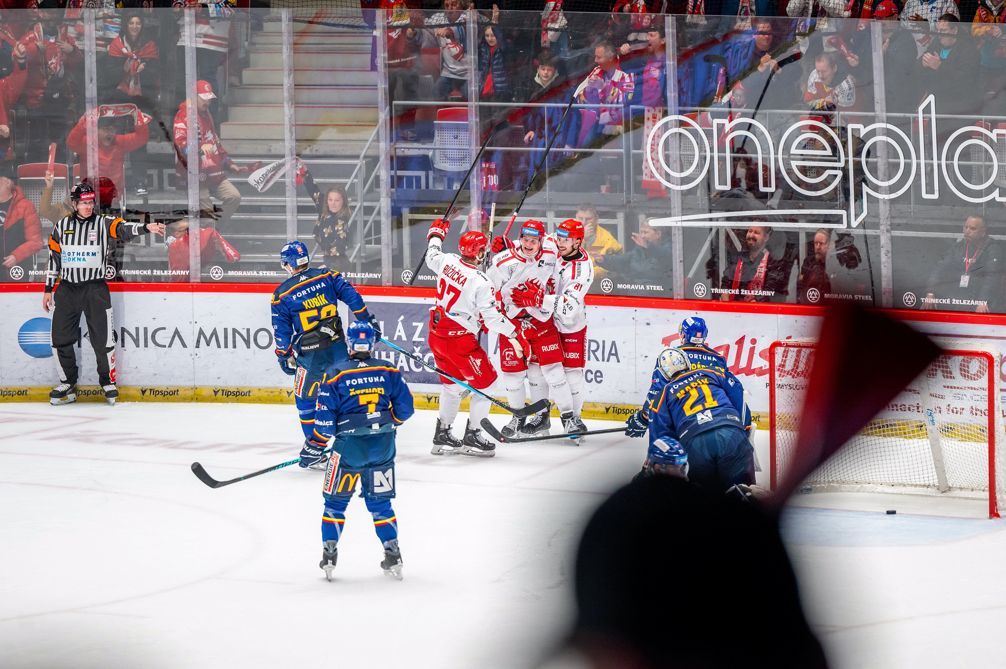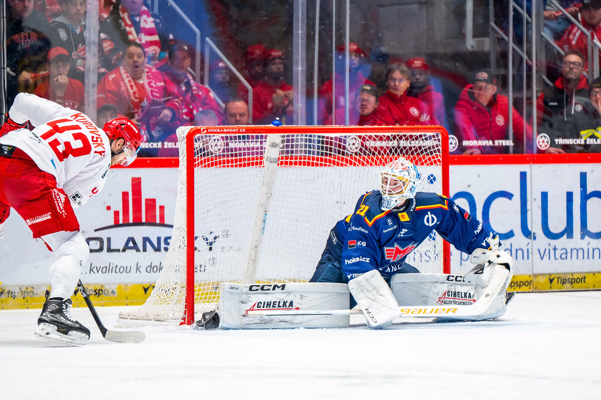 Drak dokázal podruhé udeřit, pohlednou kombinaci, do které se zapojila celá pětice domácích zakončoval z většího úhlu Libor Hudáček do odkryté branky a nemýlil se. Třinecký vlak rozhodně neměl v plánu zpomalit ani zastavit. Další útočný výpad, další branka Ocelářů. Sikora v přečíslení dva na jednoho vypálil, Mařík vyrazil kotouč přímo na hokejku Davida Ciencialy, jenž zakončil do opět odkryté části branky. V následující akci měl na hokejce čtvrtý gól Sikora, ten tentokrát trefil jen připraveného Maříka. Do této chvíle byla převaha domácích obrovská, hosté měli dvě minuty před koncem pouze tři střely, avšak poté se začaly dít věci. Nejprve snížil ranou z vrcholku levého kruhu Ondřej Vála, který trefil vzdálenější růžek třinecké branky. Přesně o dvanáct vteřin později už bylo třinecké vedení pouze jednobrankové. Z levého křídla vypálil tentokrát nad lapačku Filip Přikryl. To bylo z první třetiny vše, pět branek během prvních dvaceti minut třinečtí fanoušci dlouho neviděli.