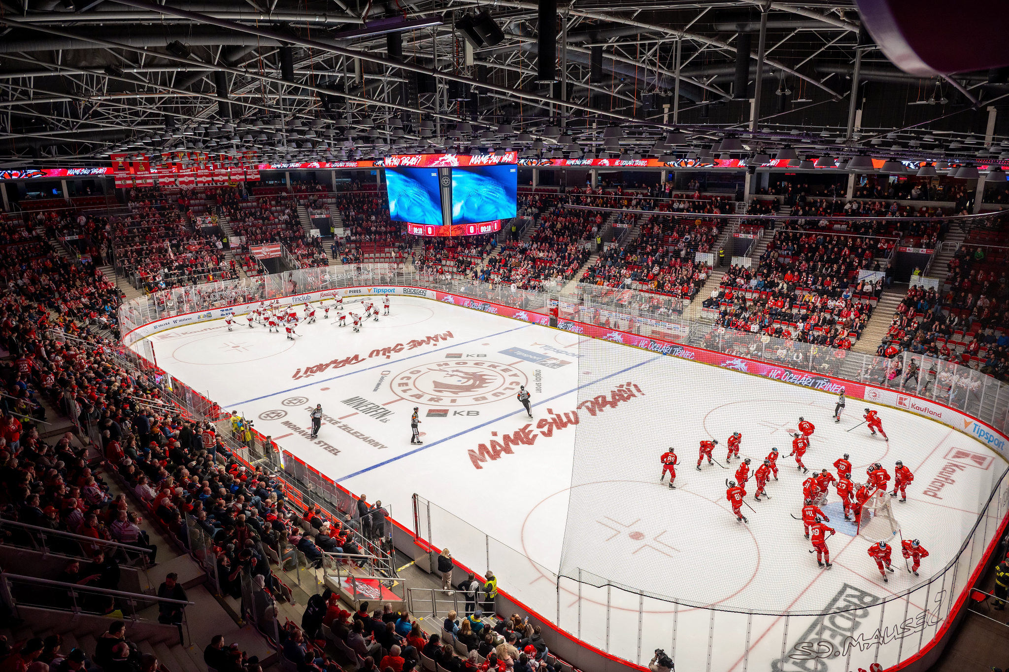 Historicky poprvé v extralize se Oceláři potkali v play-off proti Olomouci. Pro první zápas předkola už měl třinecký trenérský štáb k dispozici Kurovského, místa na křídlech si vyměnil Cienciala s Flynnem. Do branky zamířil většinu základní části chytající Marek Mazanec.