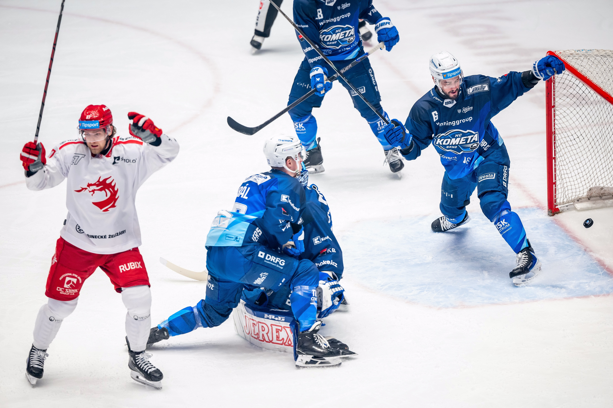 Připomeňme, že Kometa měla k dispozici ještě čtyřiadvacet sekund v početní převaze. Flek rychle zamíchal s kotoučem a vystřelil, krizovou chvíli ale domácí přežili. Dvě obrovské šance měli Brněnští, Zbořil ale neuspěl a po něm ani Zábranský, v obou případech se Mazanec vyznamenal zákrokem lapačkou. Do přečíslení se pak dostal Galvas s Růžičkou, třinecký kapitán našel střelou zápěstím jen Stezkovu vyrážečku. Minutu před koncem fauloval Ondřej Kovařčík za brankou a hosté měli ještě možnost rozhodnout prodloužení. To se jim nepovedlo, a proto musely rozhodnout až samostatné nájezdy.
