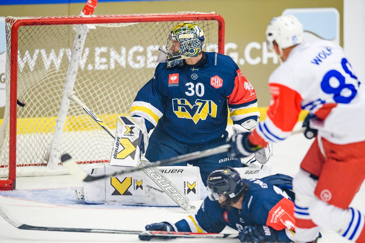 Sedminásobný německý šampion z Mannheimu začal letošní pouť Ligou mistrů výborně. Vyhrál v aréně aktuálního švédského mistra, týmu HV71 z města Jönköping 4:1. Jedním z úspěšných střelců byl ve čtvrtek večer i David Wolf. (Foto: Jonas Ljungdahl / BILDBYRÅN)