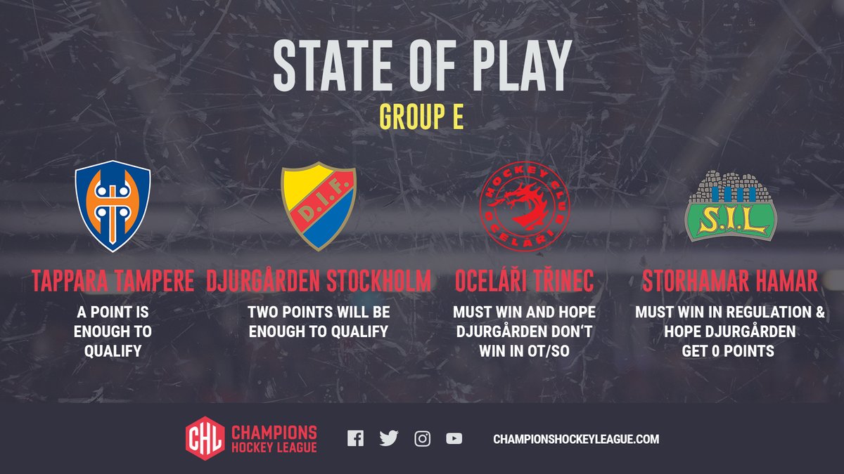 Postupové varianty ve skupině "E" Champions Hockey League:
