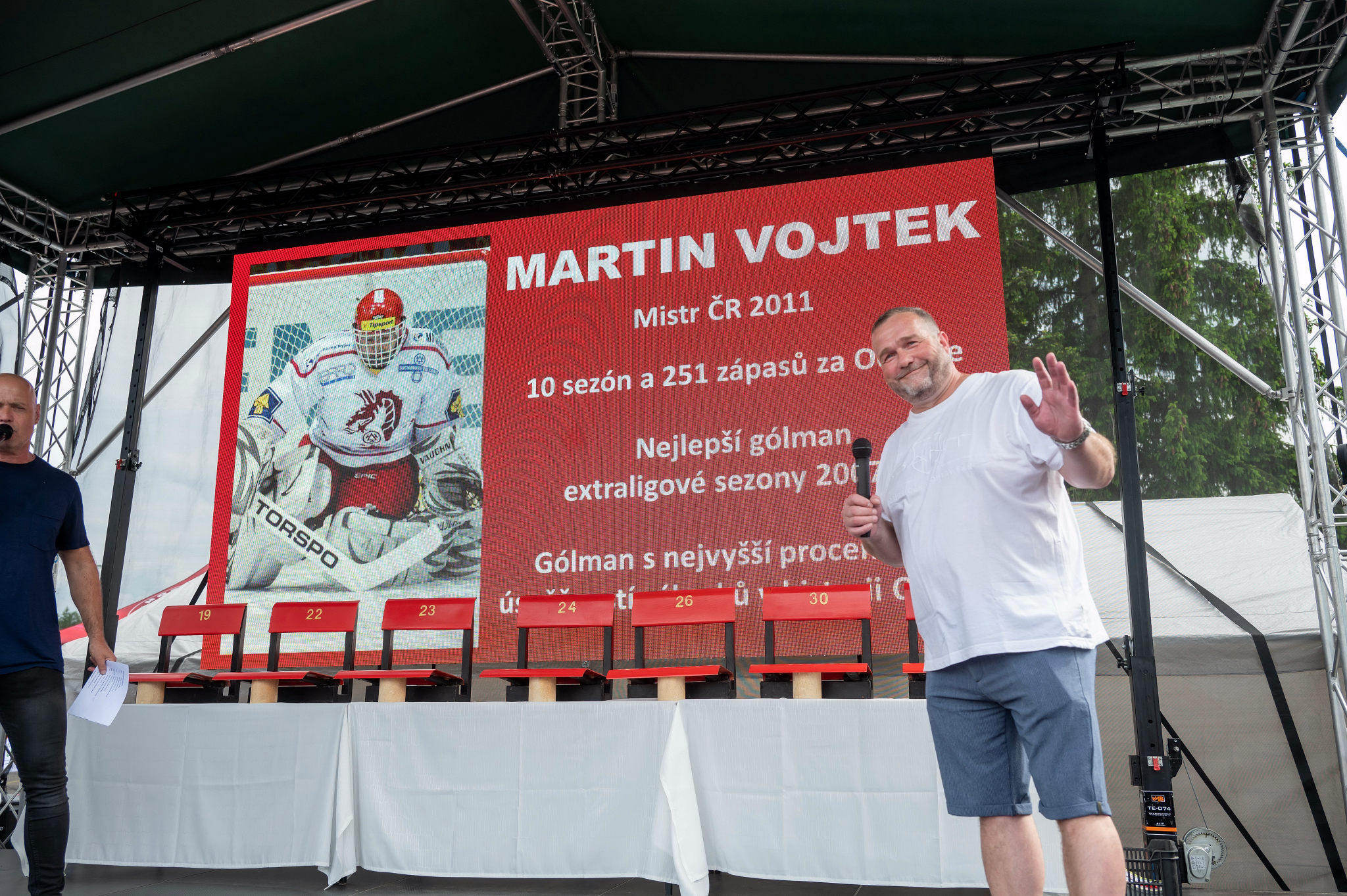 Jozef Daňo zase vzpomínal na to, jak do kabiny staré haly na tréninky vodil svého syna Marka, toho času jednoho z lídra Ocelářů. Martin Adamský i Jiří Polanský děkovali fanouškům za atmosféru, kterou na Lesní dokázali vytvořit a díky které se Třinec v jejich srdcích stal navždy sportovním domovem. Ten se po sportovní stránce stal domovem také pro Erika Hrňu, který jako hráč s Oceláři vybojoval hned pět mistrovských titulů. První právě v roce 2011 a fanoušky před Hokejkou pobavil vzpomínkami na bujaré oslavy.
