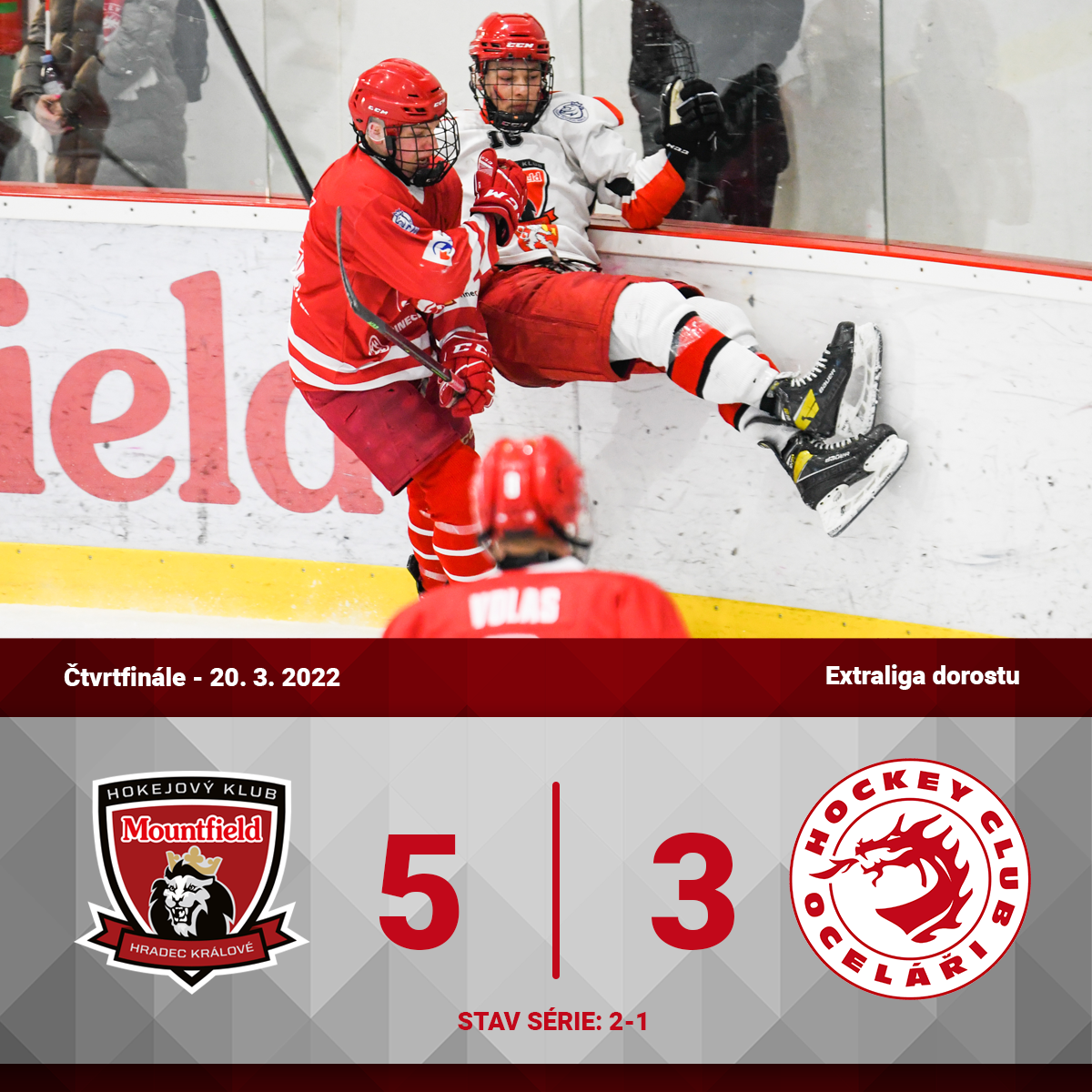Oceláři uspěli i ve druhém čtvrtfinále, Vítkovice porazili 2:1 - fotogalerie ZDE.