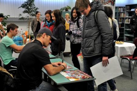 Čtveřice Ocelářů ve složení Mario Cartelli, Jiří Polanský, Jakub Orsava a Michal Chovan, zavítala po dopoledním tréninku do školy v městské části Kanada. Hokejisté přivezli ukázat poháry, které v minulé sezoně získali a pro všechny zájemce byla připravená tradiční autogramiáda.