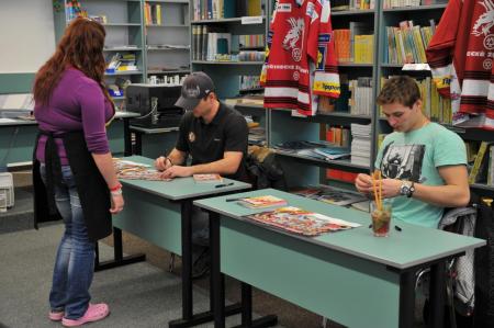 Střední odborná škola Třineckých železáren pořádala ve čtvrtek 24. listopadu "Den otevřených dveří" pro potencionální zájemce o studium. Ředitelství školního zařízení při této příležitosti připravilo malé překvapení a zpestření, kterým byla návštěva třineckých hokejistů.