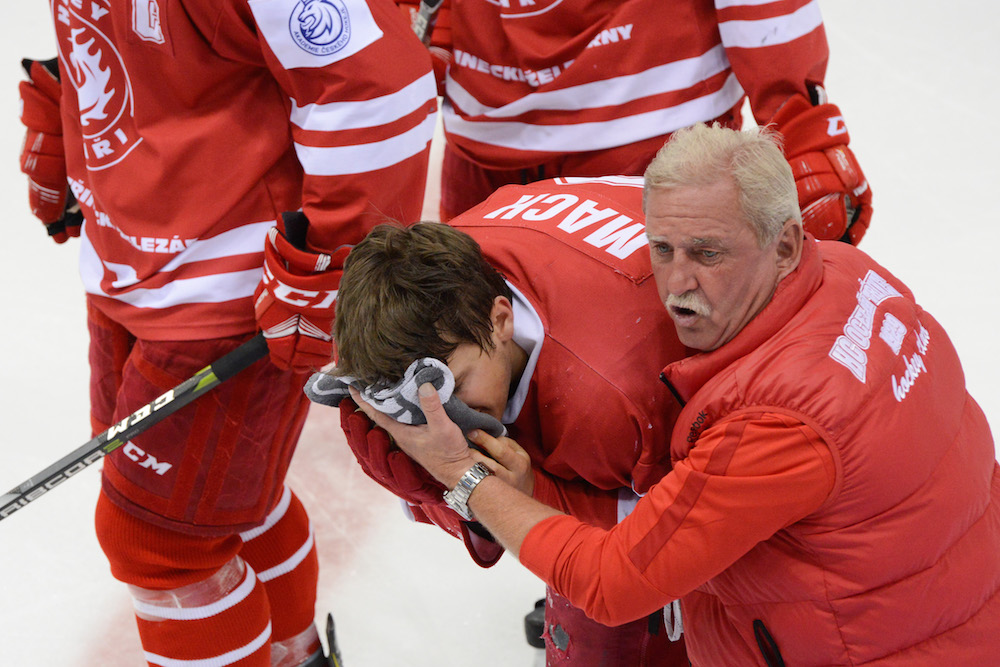 Bohužel během zápasu došlo i k vážnému zranění hráče třineckého týmu, Matěje Macha. Střela obránce ho zasáhla do obličeje a útočník Ocelářů musel být odvezen do nemocnice.