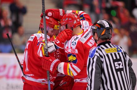 Gólová radost Kamila Krepse a Davida Noska, Oceláři vedou 2:1! foto: Marian Ježowicz.