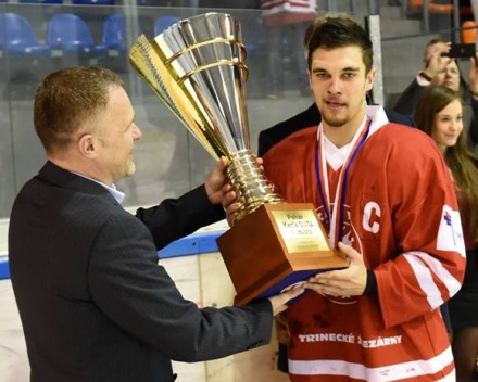 David Stránský přebírá pohár pro vítěze juniorské extraligy