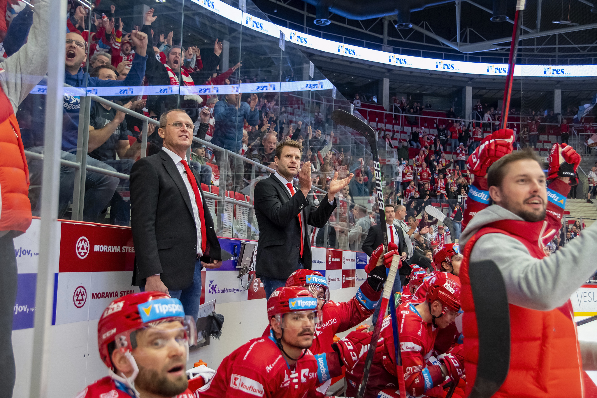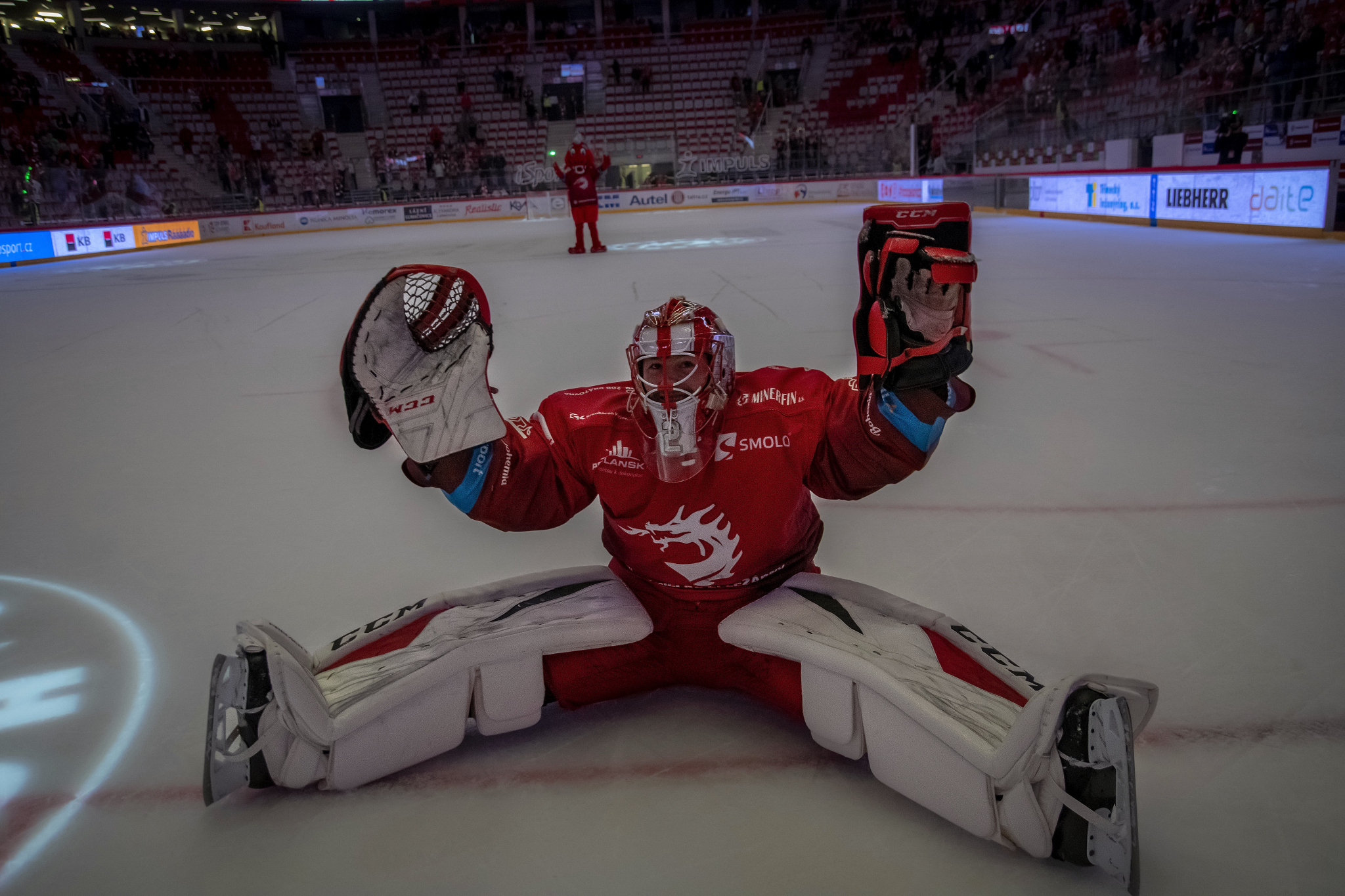 Třinecký gólman dnes diváky bavil. Po zápase metal při vítězných oslavách kotrmelce na ledě, až se mu z toho motala hlava. Úplně stejně jako při zákroku, který musel vytáhnout v průběhu třetí třetiny. Po dorážce Valentina Claireauxe se kotouč snášel za jeho záda a WERK ARENA jen obdivuhodně zahučela: Mazanec totiž po kotouči za svými zády akrobaticky máchl hokejkou, a její širší části ho odpálil do bezpečí.