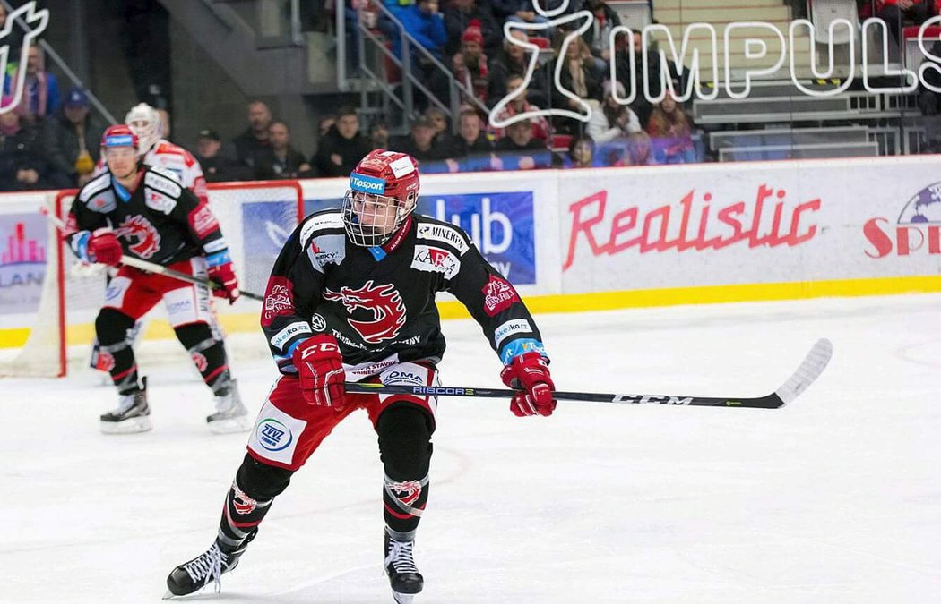 Michal Kvasnica během play off 2018, kdy sedmnáctiletý útočník sbíral cenné zkušenosti v ocelářském áčku. Foto: Lukáš Filipec.
