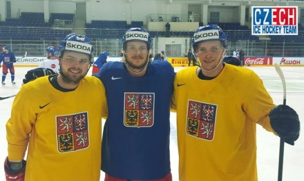 Na mistrovství světa v Moskvě zazněl třinecký akcent také v reprezentaci. Aktuální Oceláře reprezentoval (na snímku zleva) obránce Milan Doudera (8 zápasů, 0+1), bek Slovanu Bratislava Tomáš Kundrátek (8 zápasů, 1+2), který za Oceláře odehrál v kariéře 47 extraligových zápasů, a útočník Dallasu Stars Radek Faksa (3 zápasy na MS). V třinecké mládeži se ve své kariéře mihnul také forvard Bostonu, který hrál na šampionátu v první formaci, David Pastrňák.