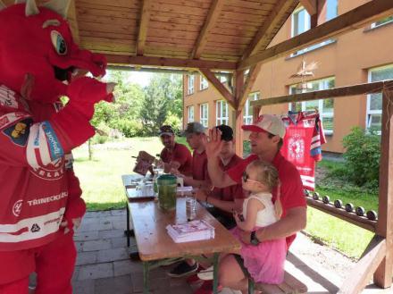 Děti napjatě očekávaly vzácnou návštěvu pod školním altánkem, kde byla připravená fanzóna. Netrvalo to dlouho a hokejisté dorazili i se svým maskotem Dráčkem Werkáčkem. Děti měly připravené otázky a hokejisté jim podávali trefné odpovědi. Poté byla autogramiáda a následovalo sportovní odpoledne po boku Ocelářských hokejových hvězd. Radost z dětských tvářiček prozrazuje nesmírné nadšení, že mohly sdílet odpoledne s hokejisty HC Oceláři Třinec a s Dráčkem Werkáčkem.