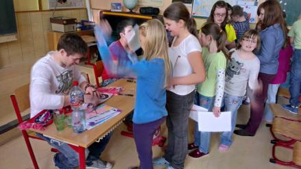 Chybět nemohl ani oblíbený dráček Werkáček, kterého si děti natolik oblíbily, že ho nechtěly ze školy pustit a měly snahu spolu s ním někam daleko odletět. Děti byly na besedu výborně připravené a zaměstnaly hráče mnohdy záludnými otázkami.
