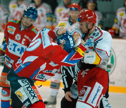 Jožo Balej představuje problém nejen pro soupeřova brankáře, ale i ostatní hokejisty. V případě potřeby totiž dokáže soupeře umravnit.