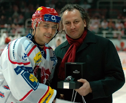Ladislav Kohn na snímku přebírá cenu za nejlepšího Oceláře základní části. Stejně jako v dlouhodobé části sezóny byl i v play-off nejproduktivnějším třineckým hráčem.