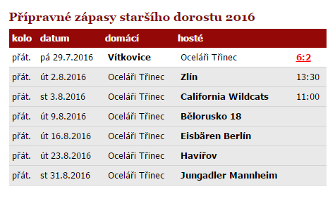 Následovat budou utkání proti běloruské osmnáctce, německému Eisbären Berlin a Havířovu. Generálkou na další ročník extraligy staršího dorostu pak bude zápas proti Jungadleru Mannheim.