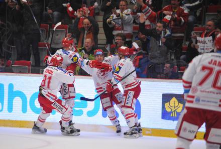 Radost Ocelářů během pátečního utkání. Bude podobná euforie i v neděli? foto: Marian Ježowicz.