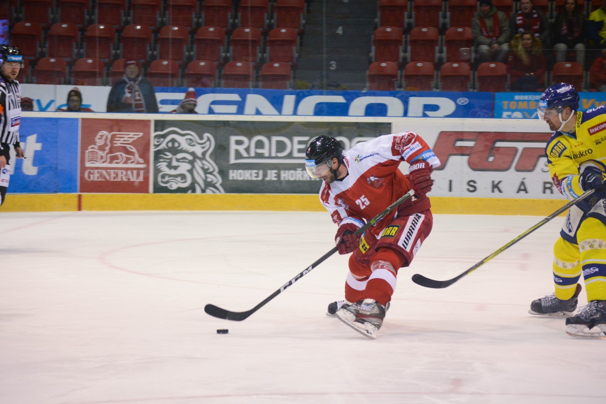 Začátkem kalendářního roku 2018 došlo na trase Třinec – Olomouc k výměně forvardů. Do Třince přišel Roman Vlach a do Olomouce se stěhoval Zbyněk Irgl. Hráč, který v hanácké metropoli oblékl dres s číslem 25, se stal jednou z hlavních tváří kohoutů. Projevilo se to už v jarním play off, kde v devíti zápasech nastřádal osm bodů (4+4). (Foto: Michaela Martinátová, www.hc-olomouc.cz)