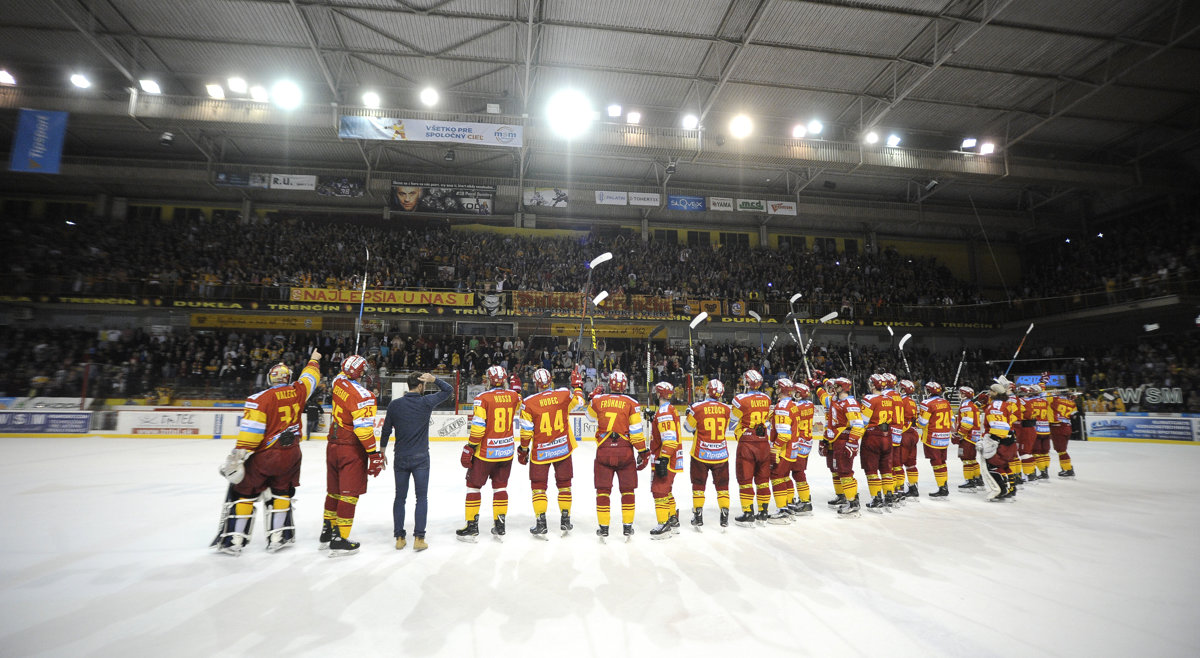 Hokejisté Dukly Trenčín se po letech průměrných až podprůměrných výkonů a výsledků, kdy se od roku 2012 nedokázali ani jednou probojovat do semifinále slovenské extraligy, na jaře 2018 dočkali zase hokejové euforie, skvělých výsledků a naplněné arény Pavla Demitry. Finále s Banskou Bystricí, před kterou se v tabulce základní části Dukla dokázala o bod dostat, se dlouho vyvíjelo jednoznačně – po třech zápasech Banská Bystrica vedla 3:0. Trenčínští nakonec stejně jako Oceláři v Česku skončili stříbrní – Bystrica se ale radovala nejtěsnějším poměrem výher 4:3. Rozhodující finále 24. dubna v Trenčíně sledovalo 6 150 diváků, tedy plná hala. (Zdroj foto: SITA)