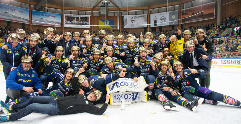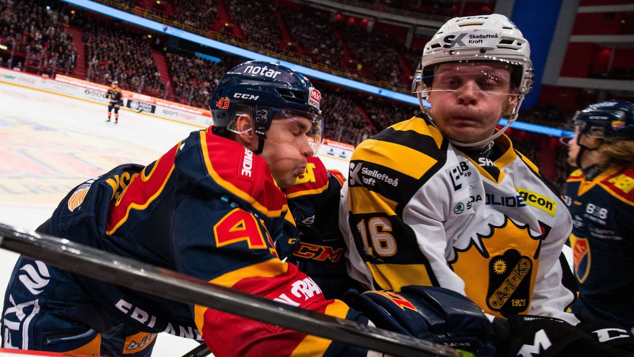 Pouť Djurgårdenu sezónou 2017-18 švédské ligy skončila v semifinále. Po vyřazení Linköpingu ve čtvrtfinále, si o kolo později hráči stockholmského klubu nepřišli na tým Skellefteå AIK a byli vyřazeni. Na kvalifikaci do letošního ročníku Champions Hockey League to stačilo – Djurgården totiž v základní části skončil na druhém místě. Snímek je z pátého zápasu hraného 11. dubna ve větší hale Ericsson Globe, kam se kvůli velikému zájmu fanoušků utkání přesunulo z vedlejšího Hovetu. Domácí zápas vyhráli 2:1, ale bylo to poslední jejich vítězství v sezóně. (Zdroj snímku: shl.se)