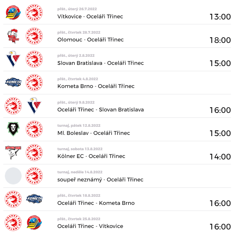Junioři v přípravě změří síly především se soupeři, se kterými se později budou rvát o extraligové body. V posledním červencovém týdnu zamíří Oceláři na led Vítkovic a Olomouce, následovat budou dvojutkání se Slovanem Bratislava a brněnskou Kometou.