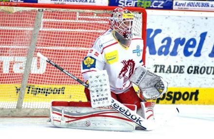 Šimon Hrubec během utkání v Karlových Varech. foto: Jan Čech