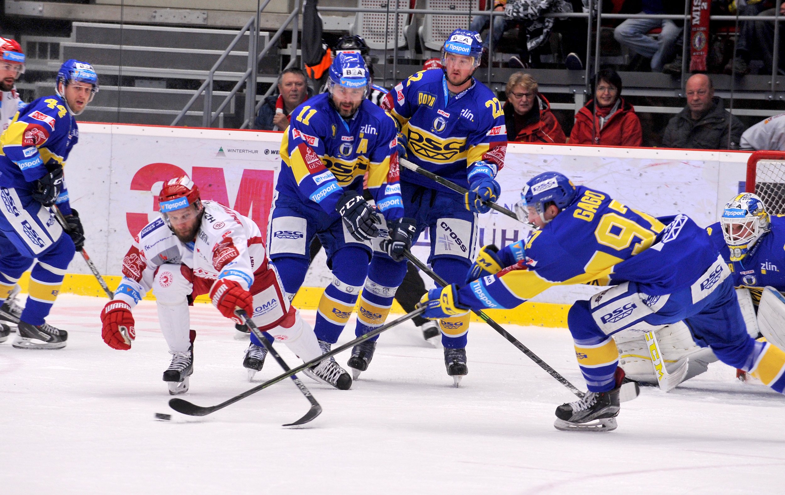 3. ledna 2017: PSG Zlín - HC Oceláři Třinec 4:2 (2:0, 1:0, 1:2).