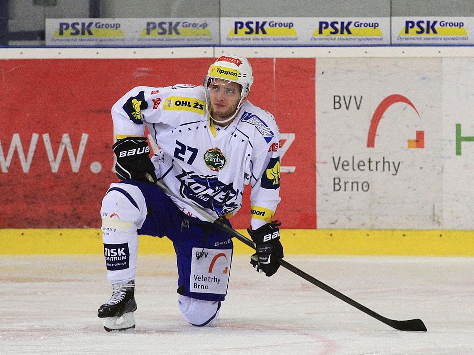 Po dlouhých osmnácti zápasech v brněnském dresu se Antonín Honejsek v úterý poprvé prosadil. Jeho proměněný nájezd znamenal výhru Komety na ledě Karlových Varů a zisk prémiového bodu. FOTO: Ivo Dostál (www.hc-kometa.cz)