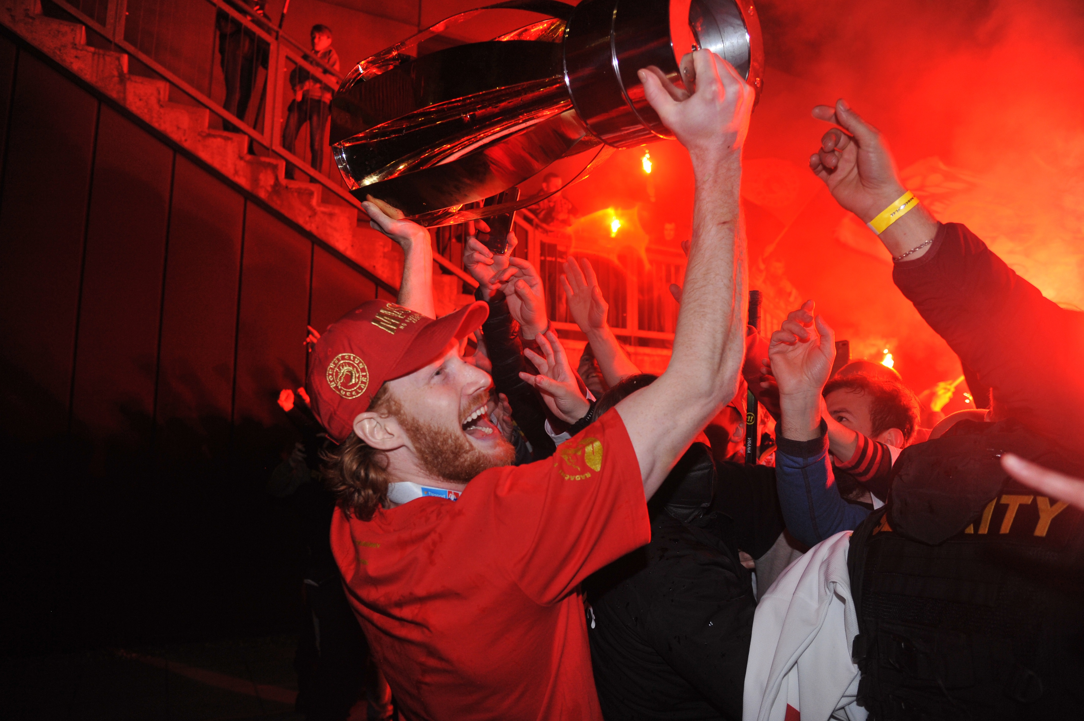 Petr Vrána i přes zákaz ochranky chtěl, aby si někteří fanoušci aspoň sáhli na pohár.