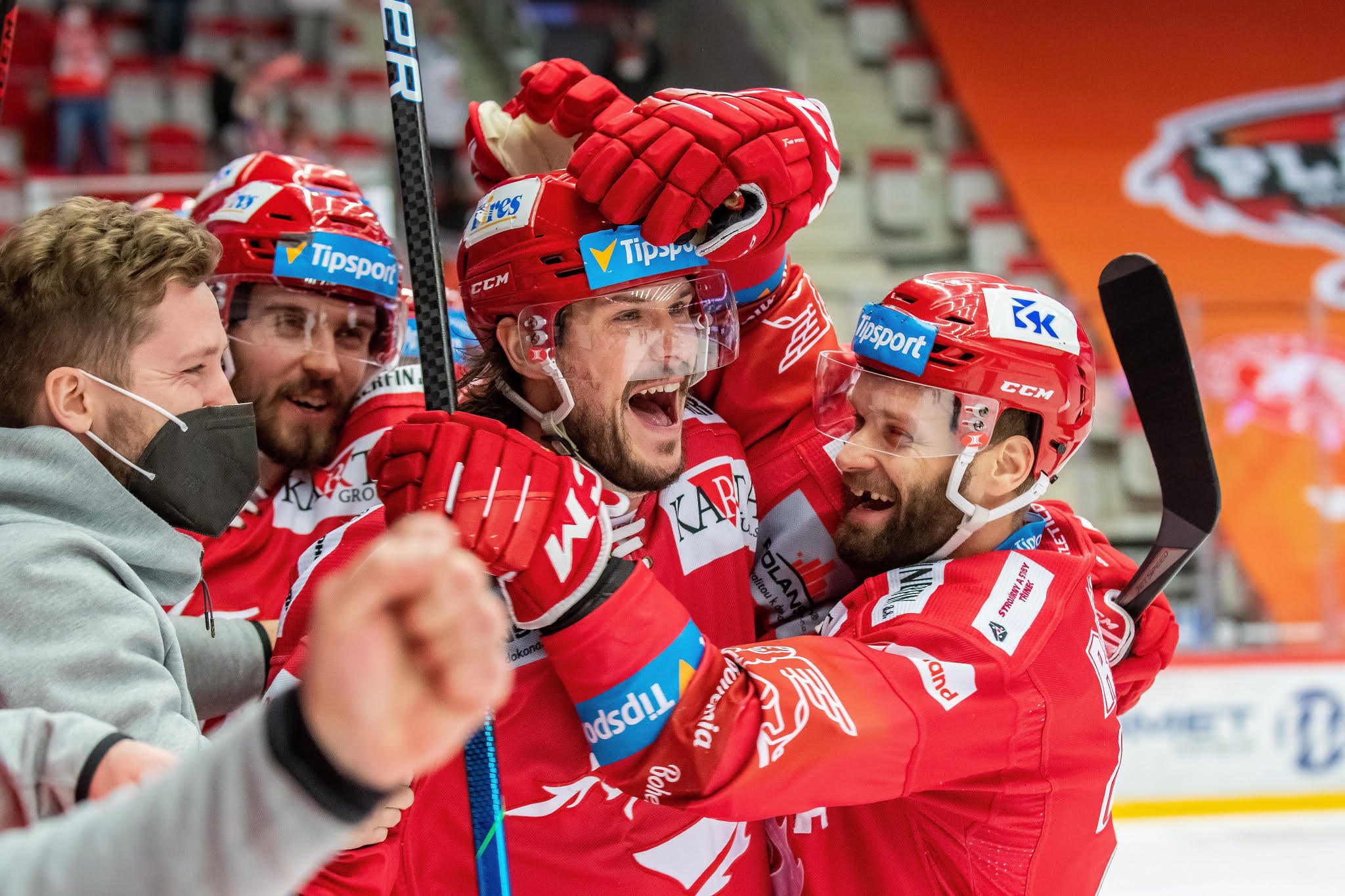 Euforie Kundrce po gólu na 2:0 v prvním finále. Pro fotografa těžké. V takových momentech chcete taky vyskočit a řvát jak pominutý, ale musíte zadržet dech a fotit.