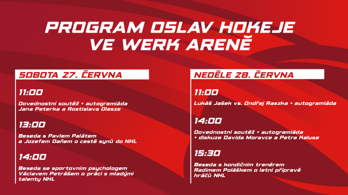 Hokejové oslavy pod Javorovým si nenechají ujít ani současní a bývalí čeští hráči. Potkat v třinecké aréně budete moci například olympijského vítěze z Nagana a dvojnásobného mistra světa Davida Moravce nebo třineckého rodáka Lukáše Jaška. A WERK ARENU navštíví také Petr Kalus, který do zámořské NHL nakoukl v dresu Bostonu Bruins. Kompletní seznam hostů i času jejich autogramiád najdete na přiloženém plakátu.