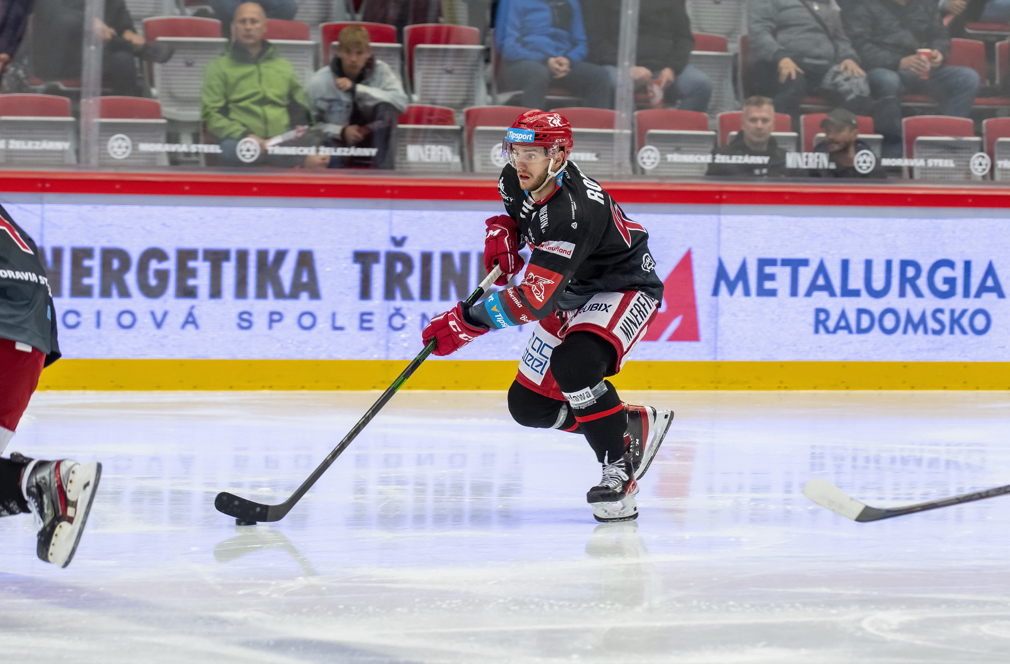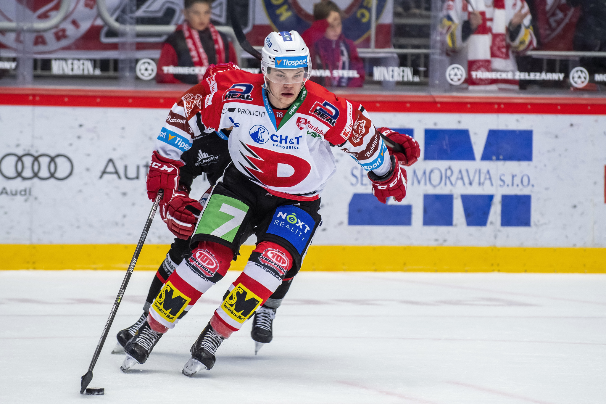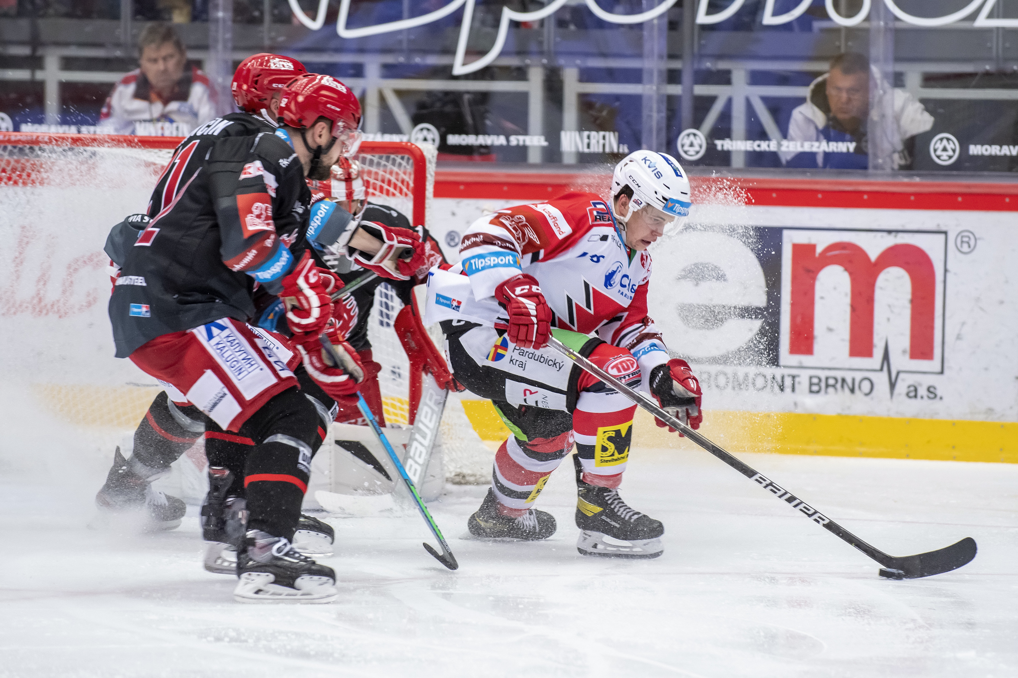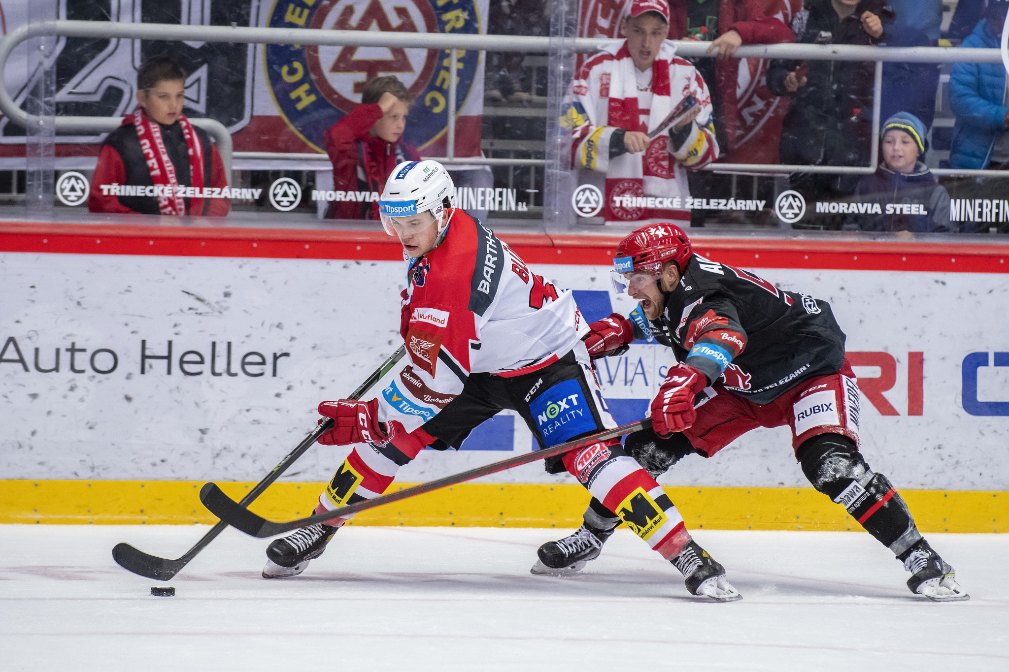 Marian Adámek se snaží obrat o puk hostujícího hráče