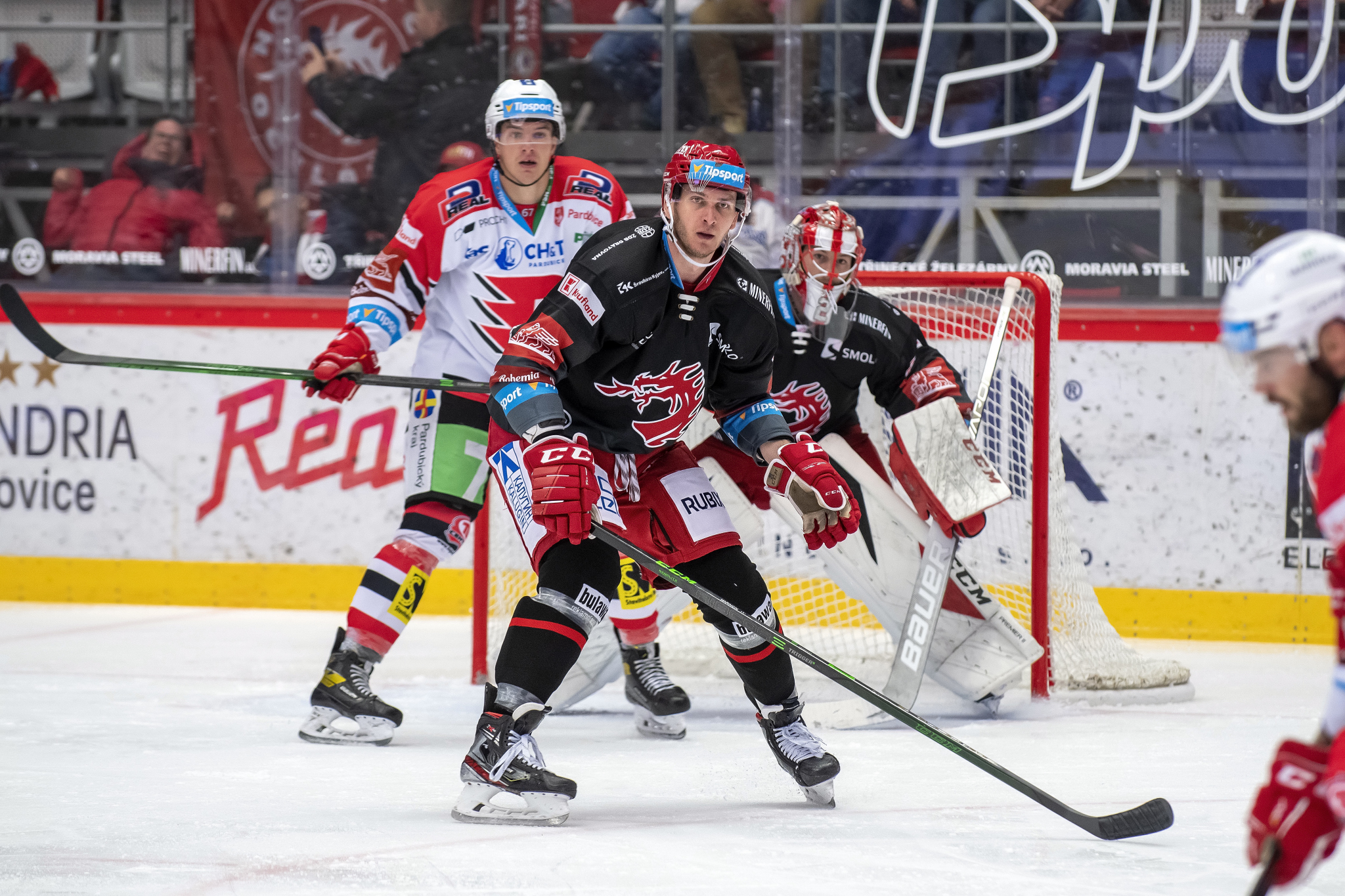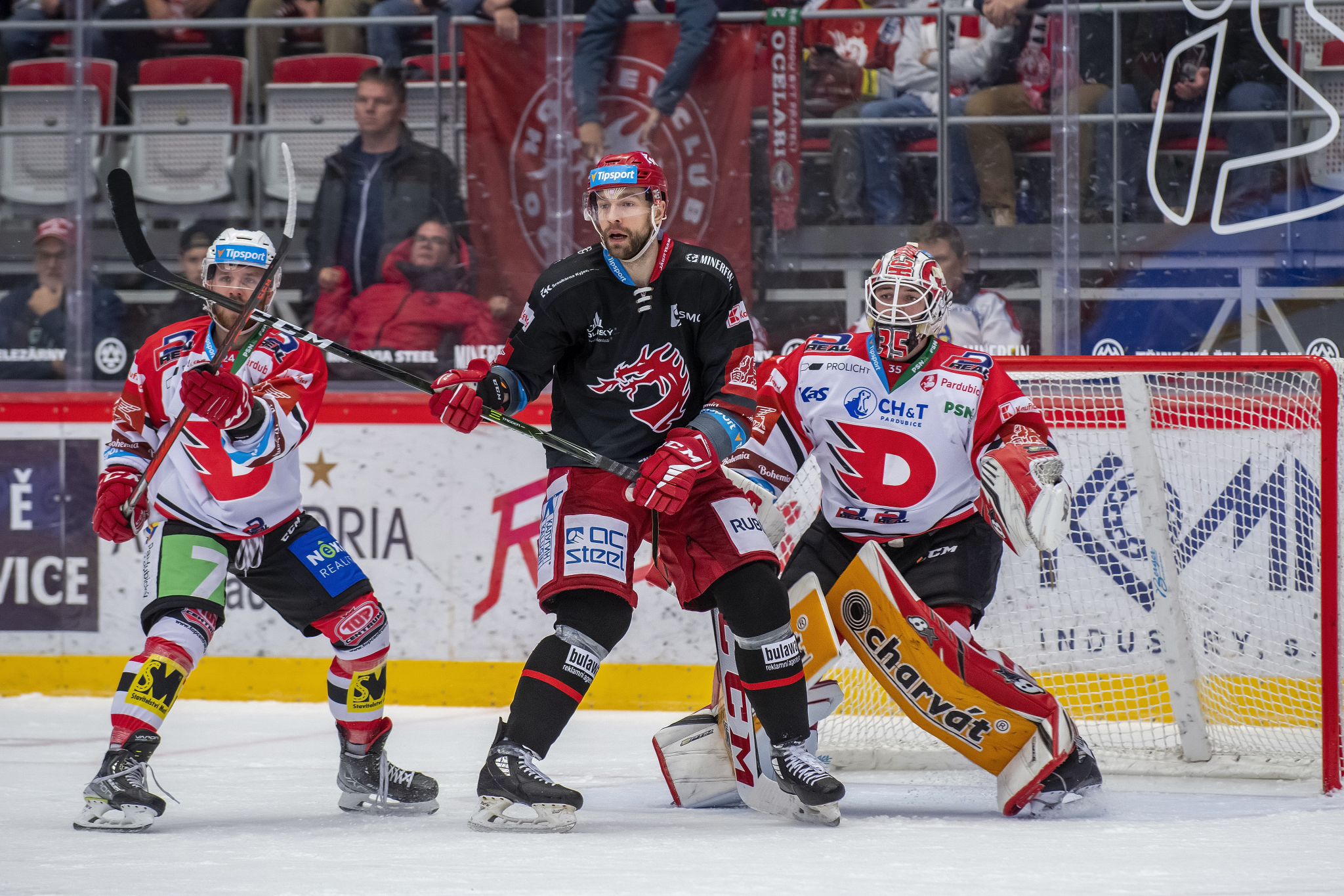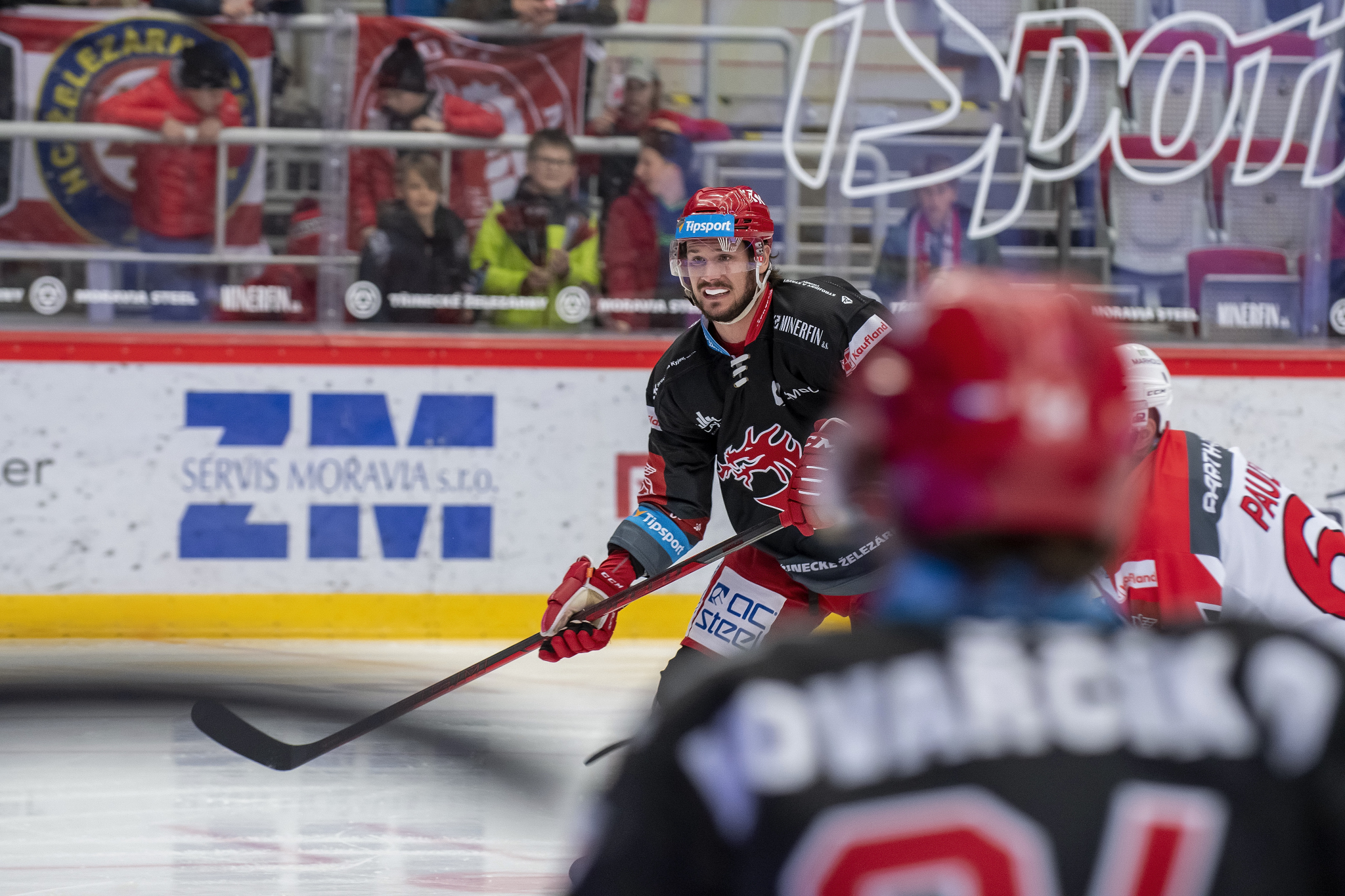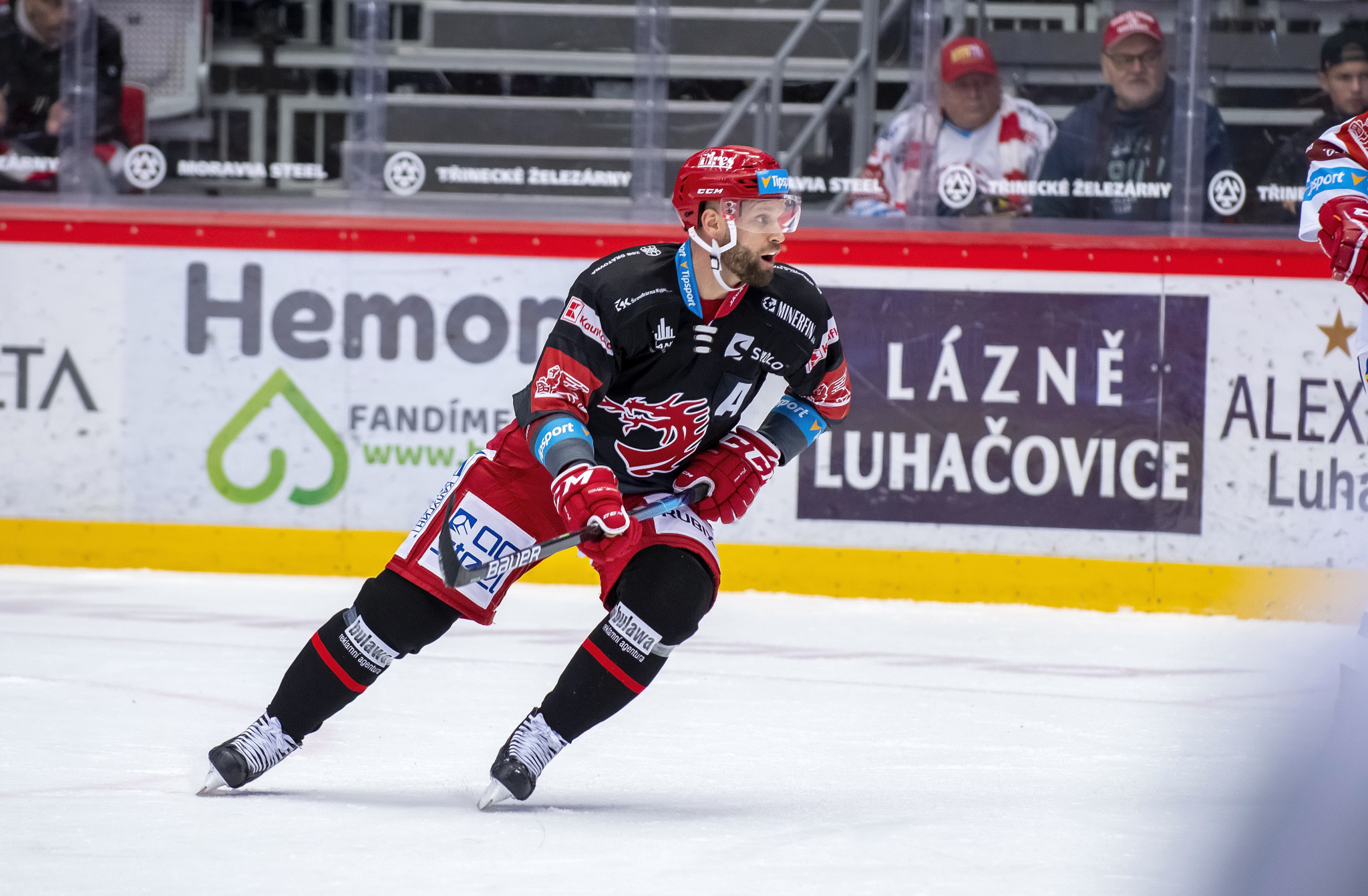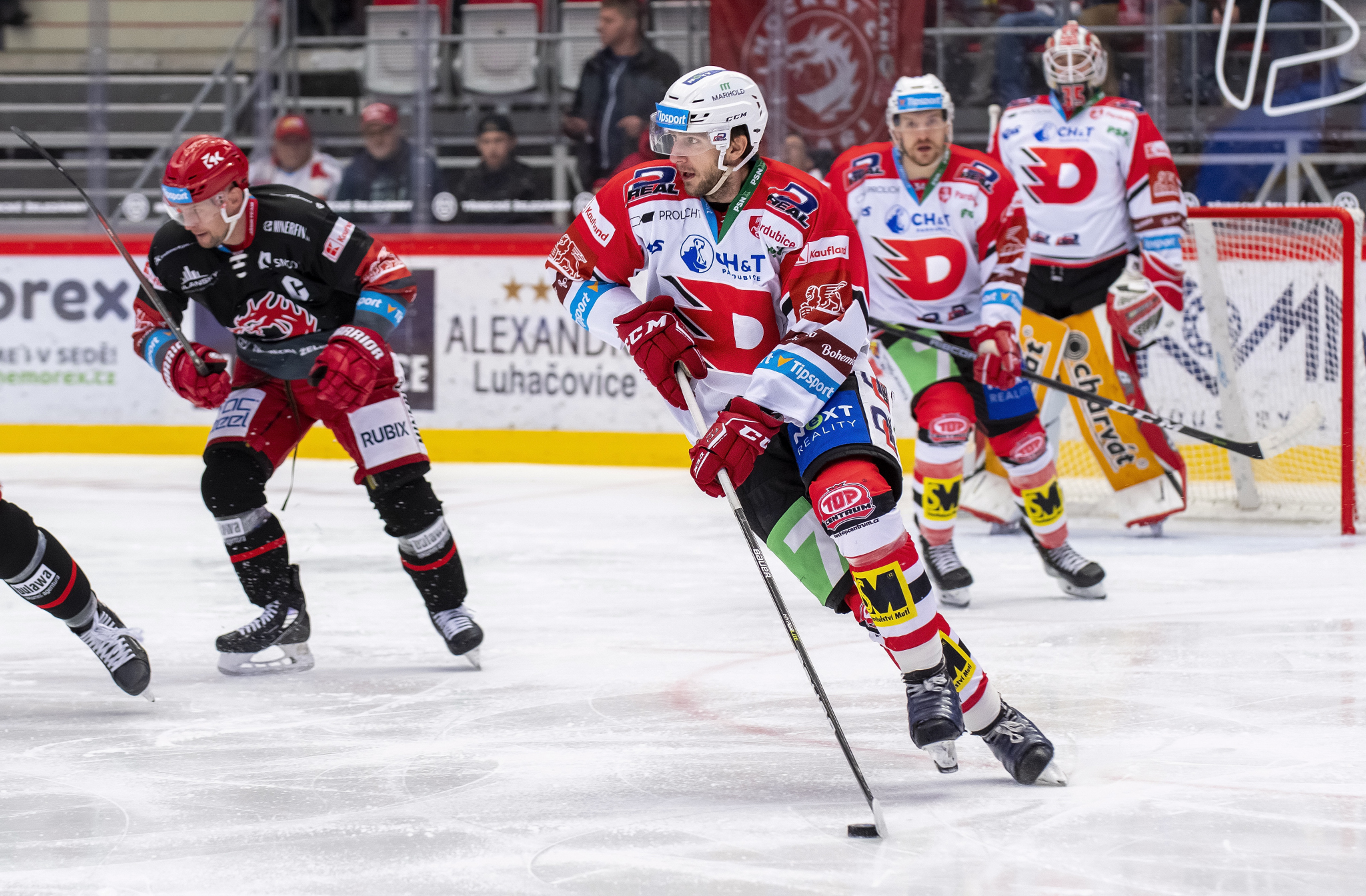Marian Adámek se snaží obrat o puk hostujícího hráče