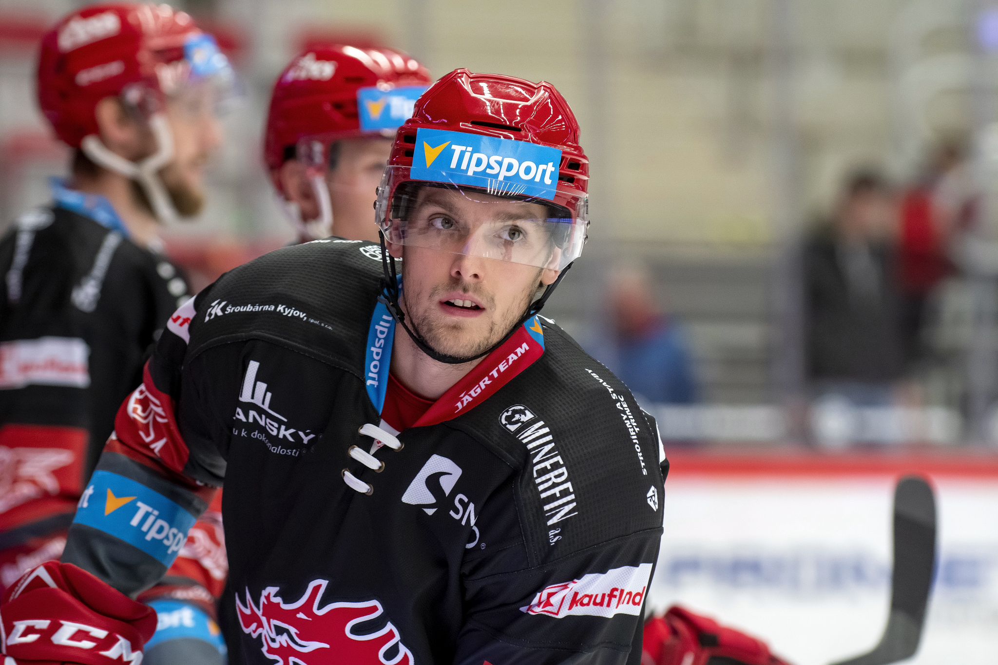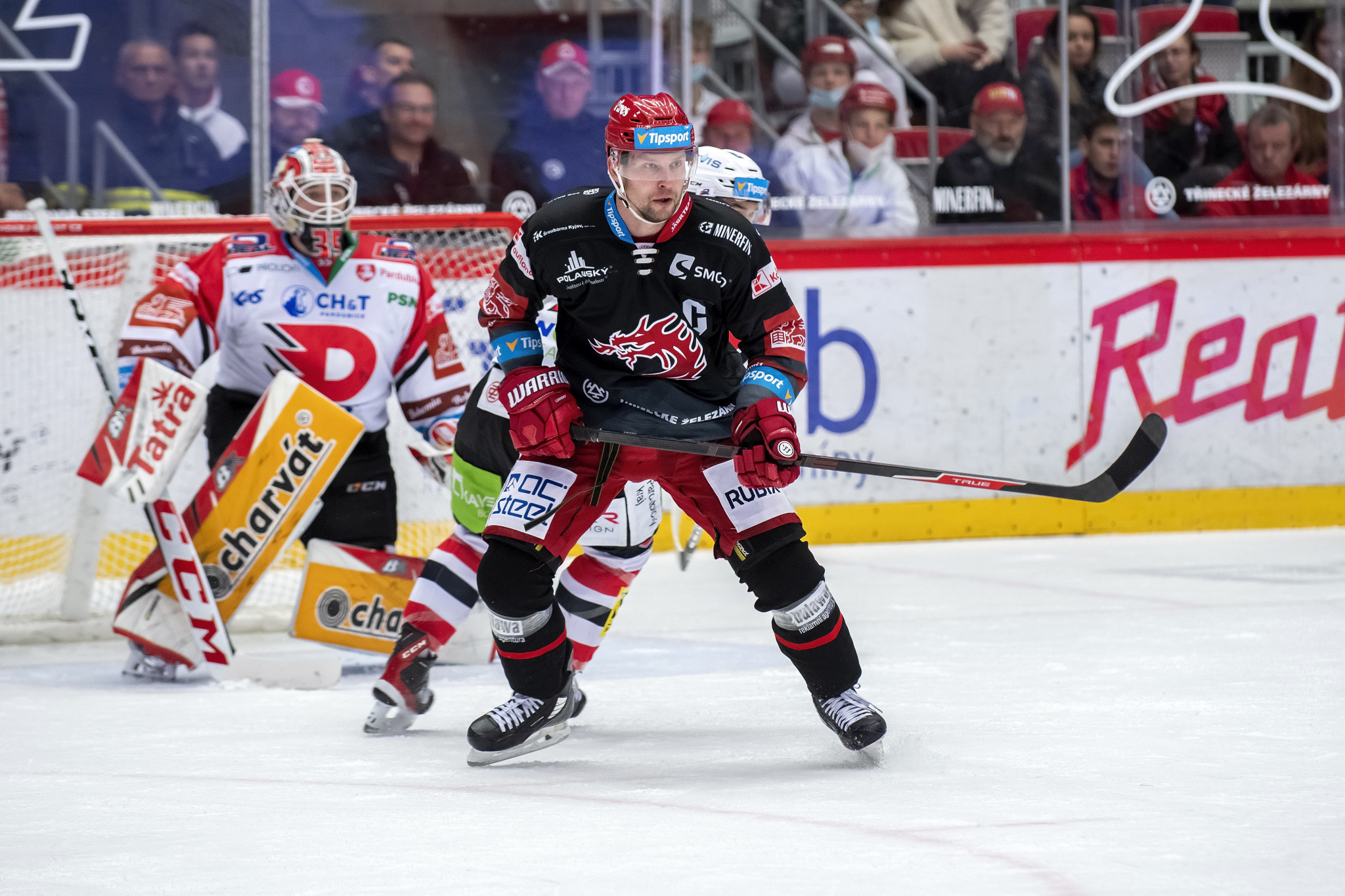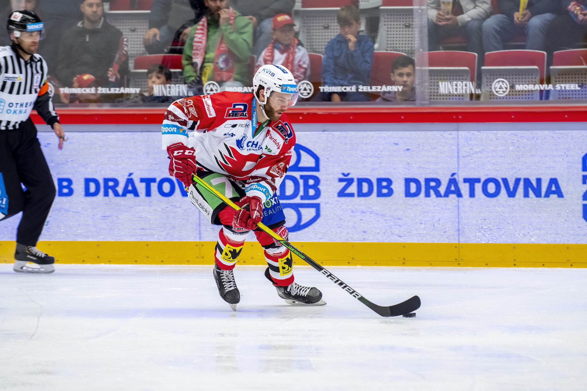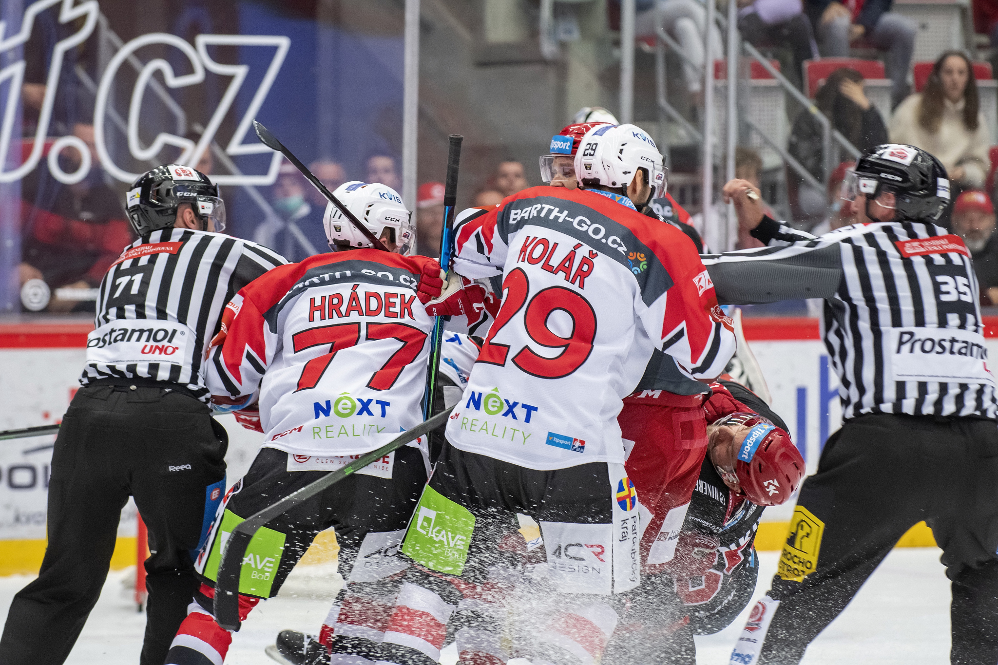 Marian Adámek se snaží obrat o puk hostujícího hráče