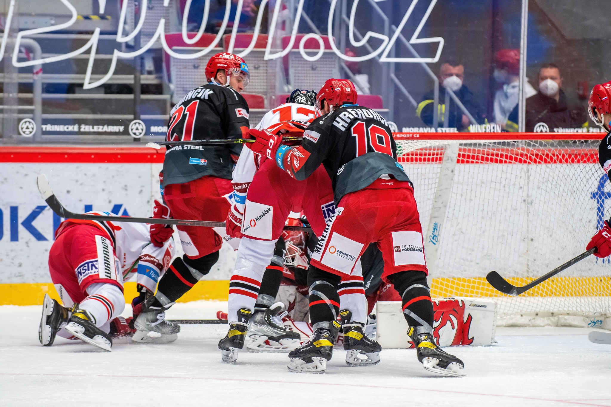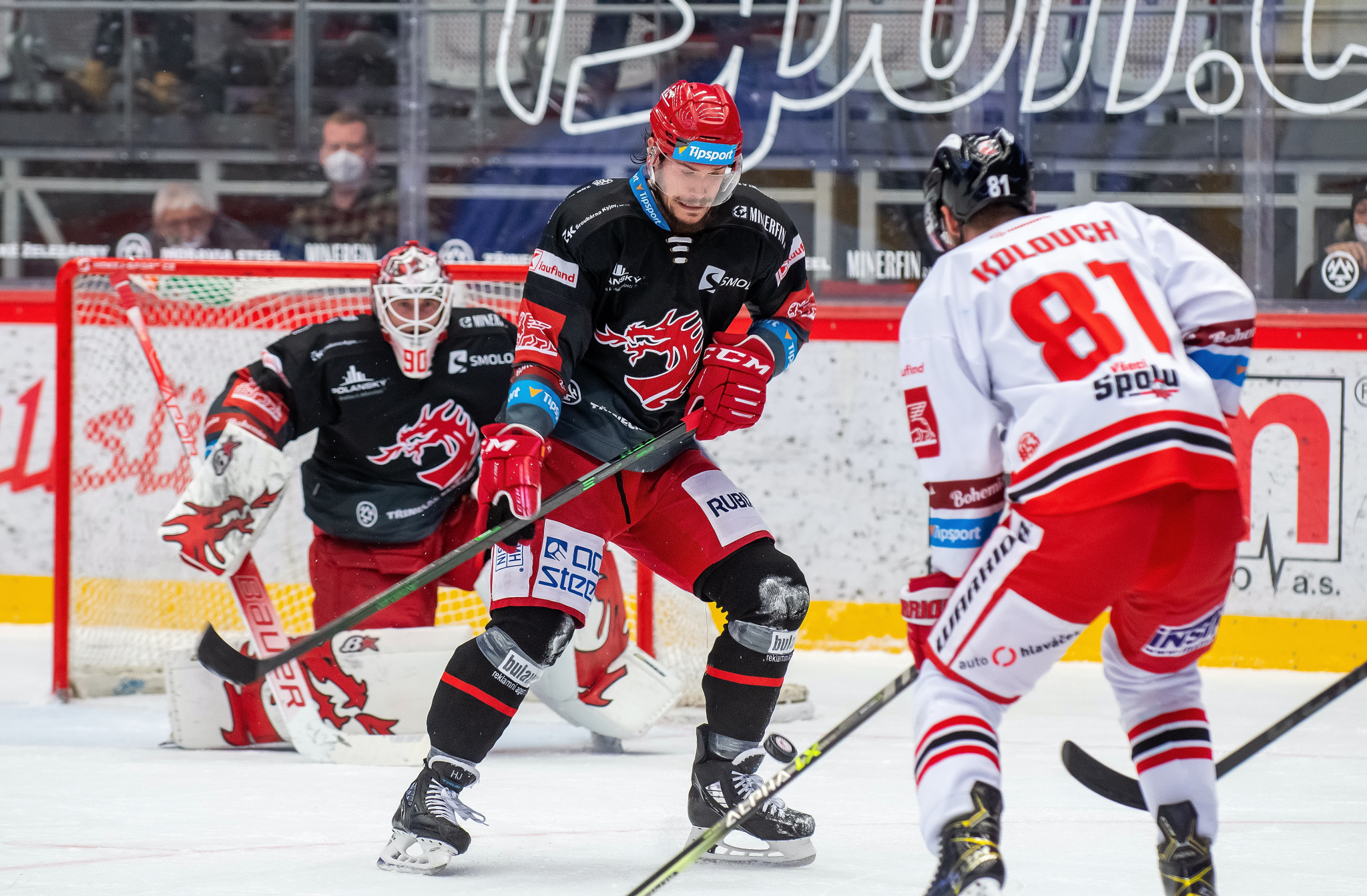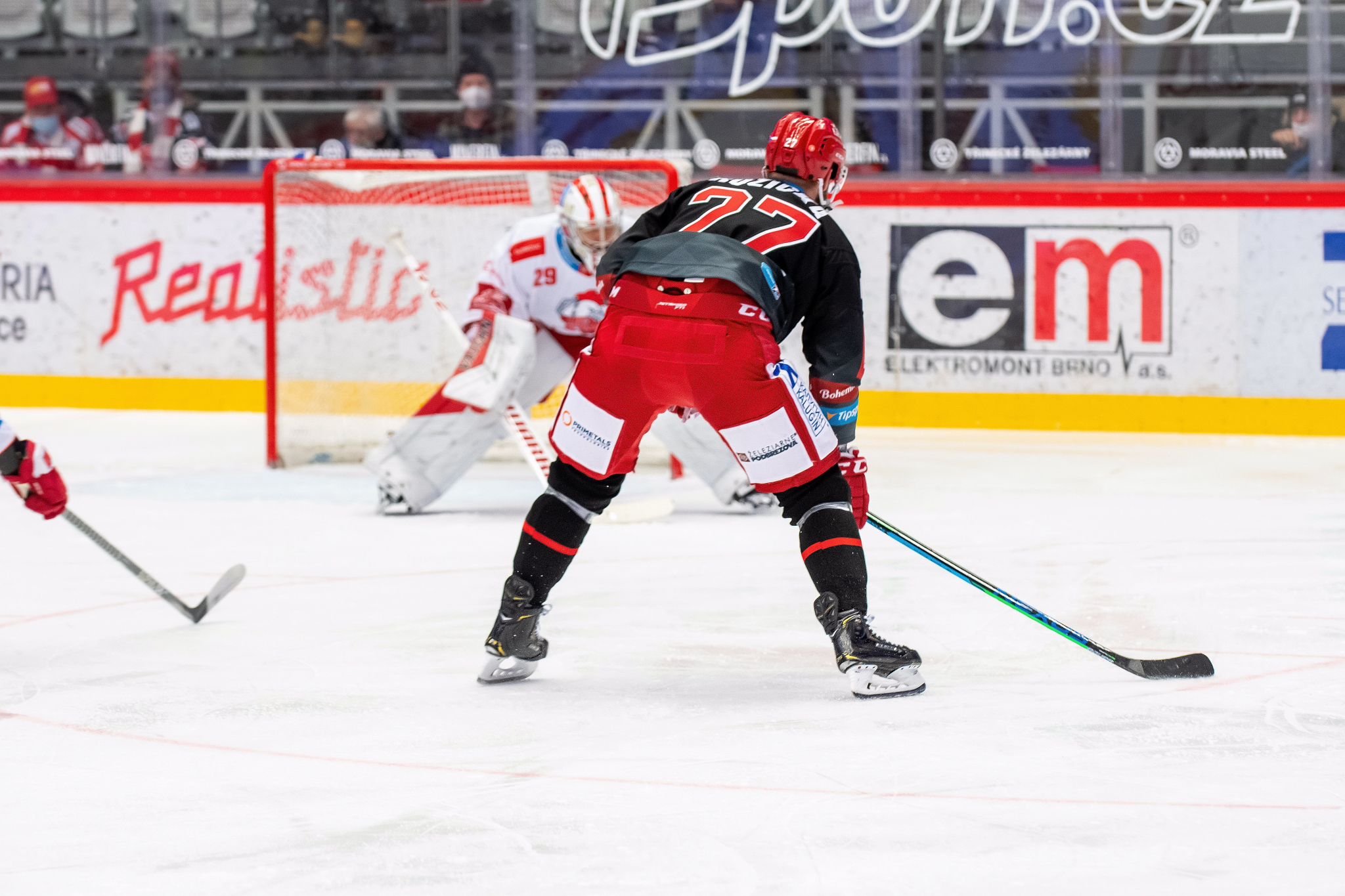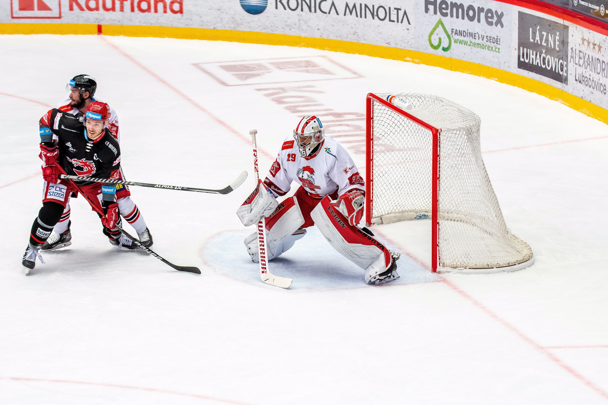 Milan Doudera střílí na Ondru Kacetla při rozbruslení