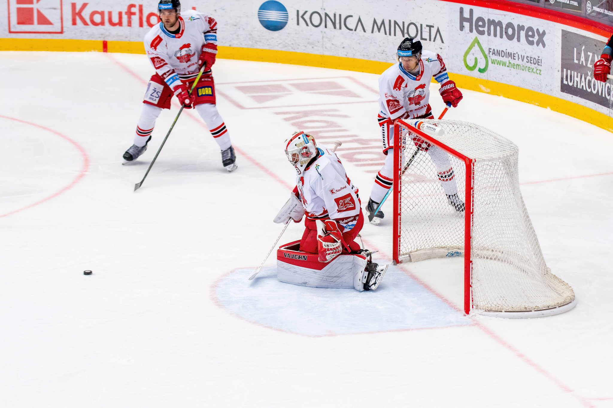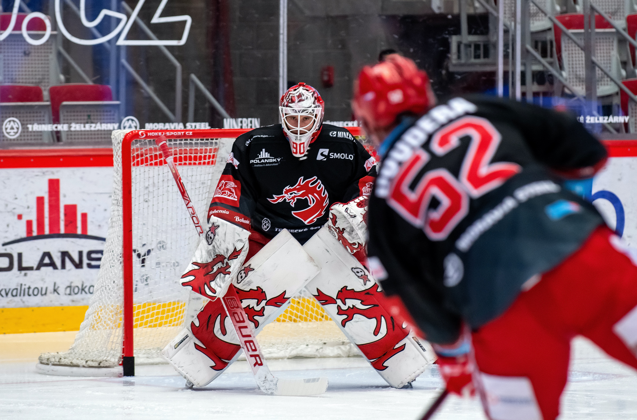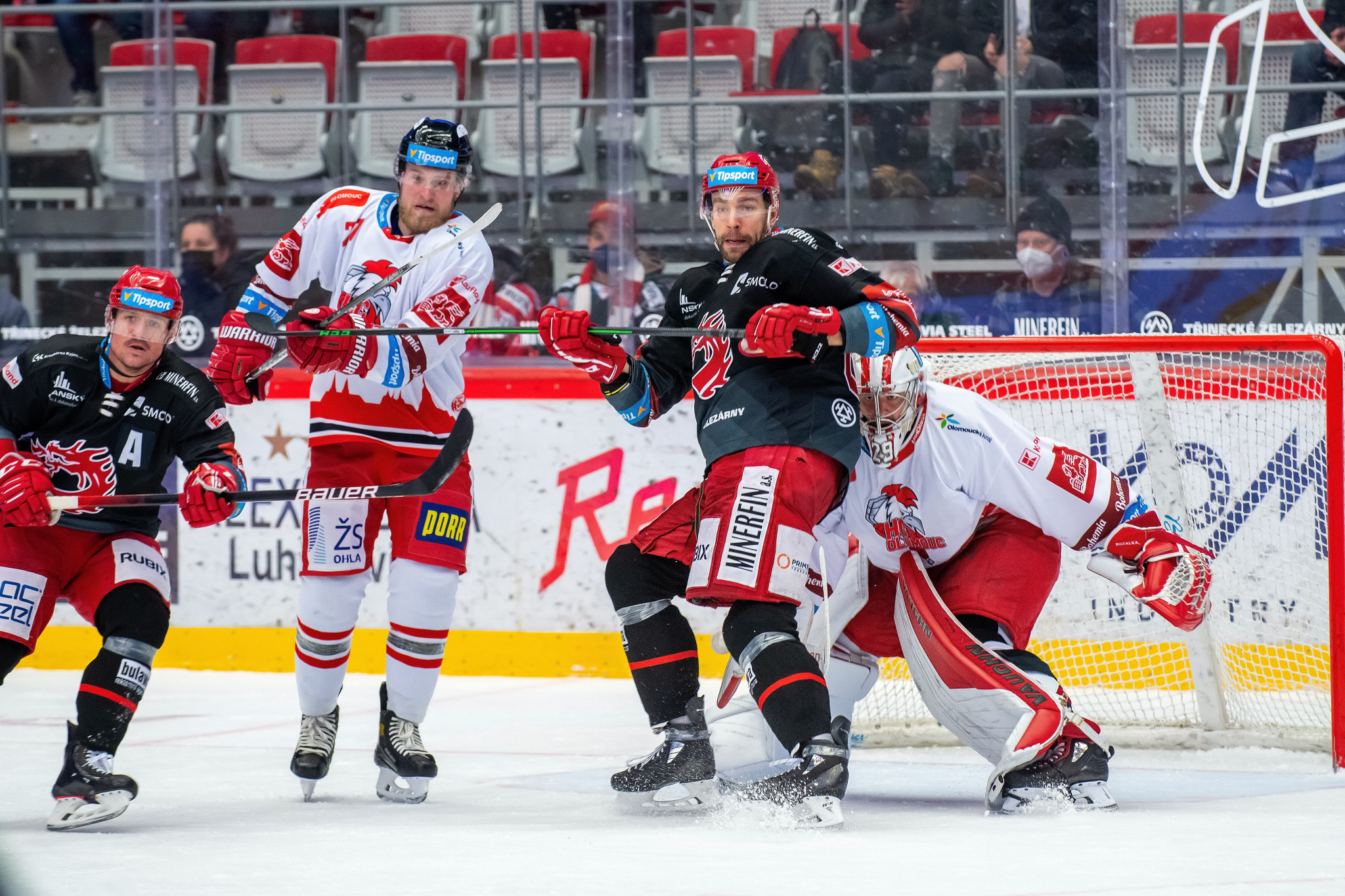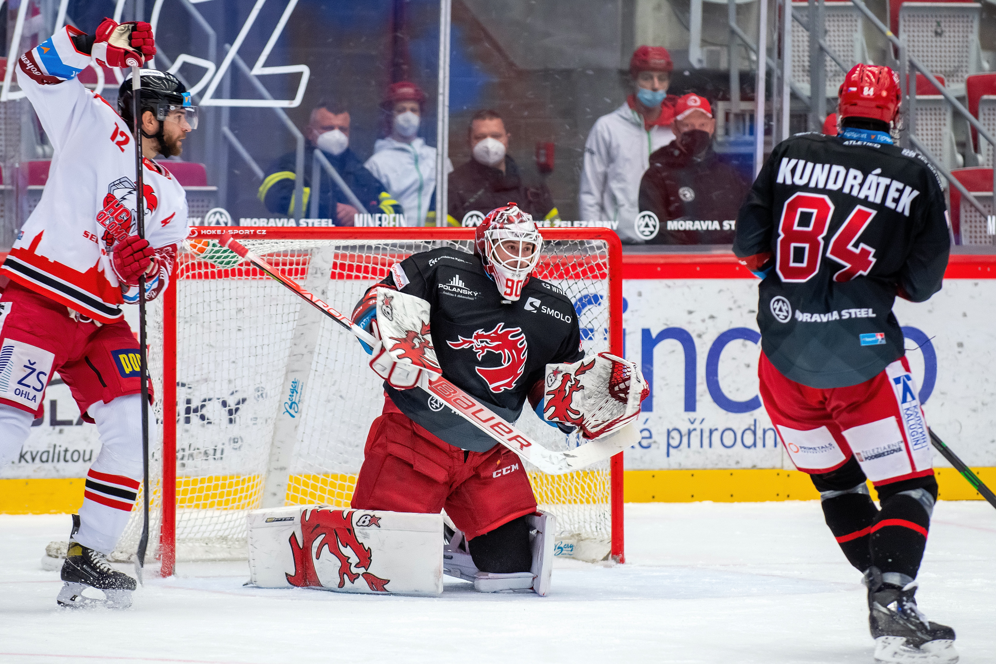 Milan Doudera střílí na Ondru Kacetla při rozbruslení