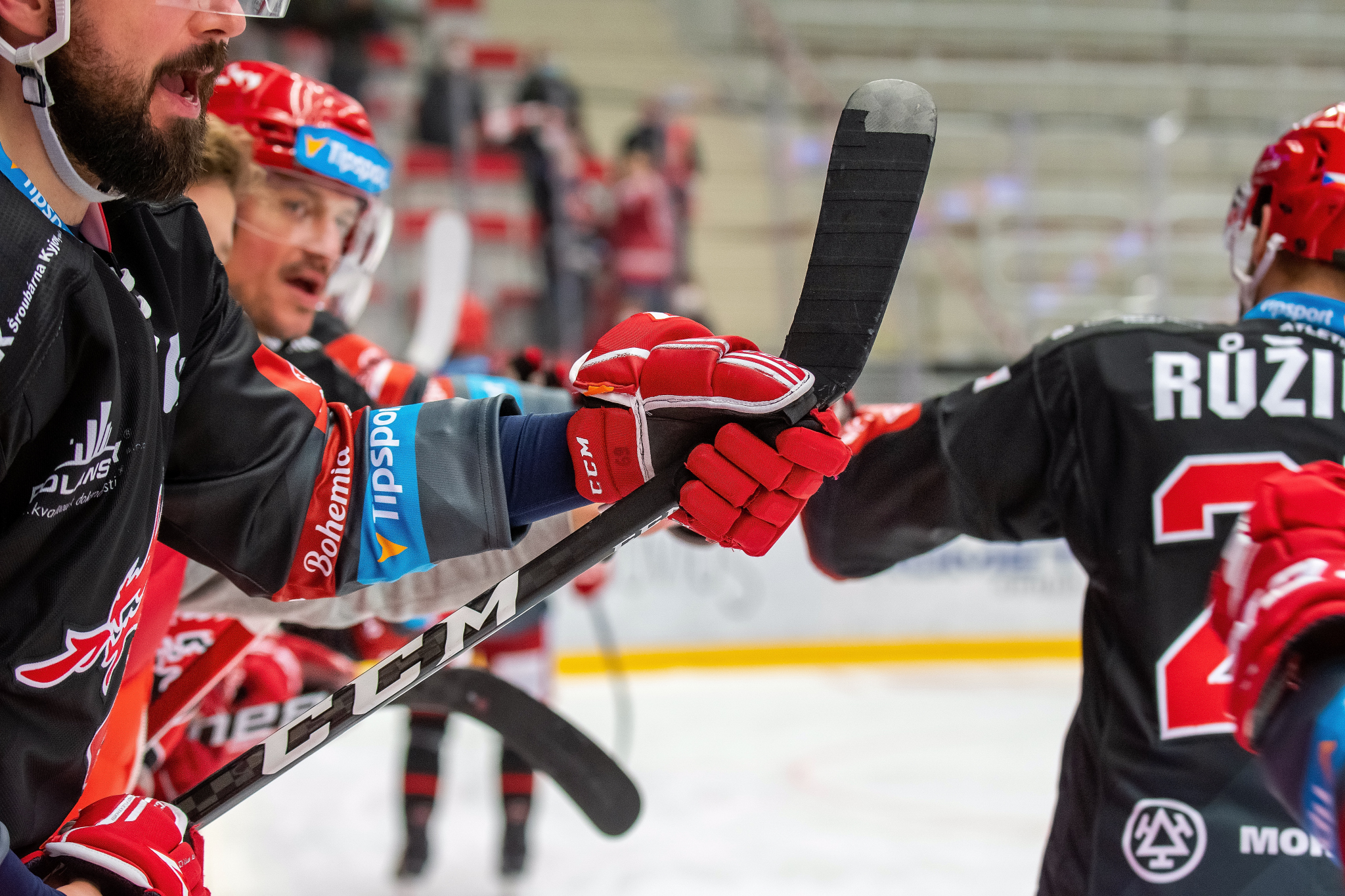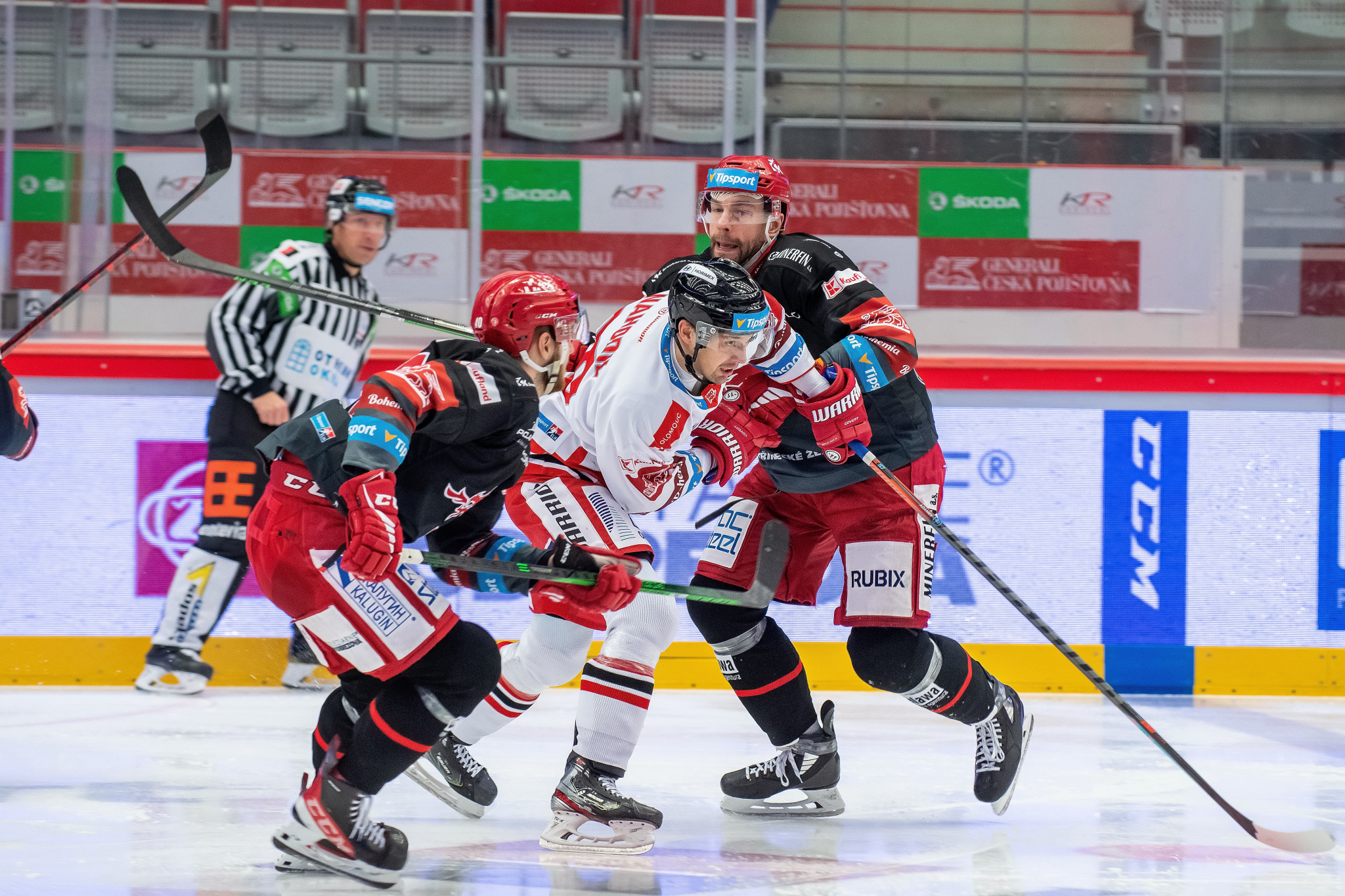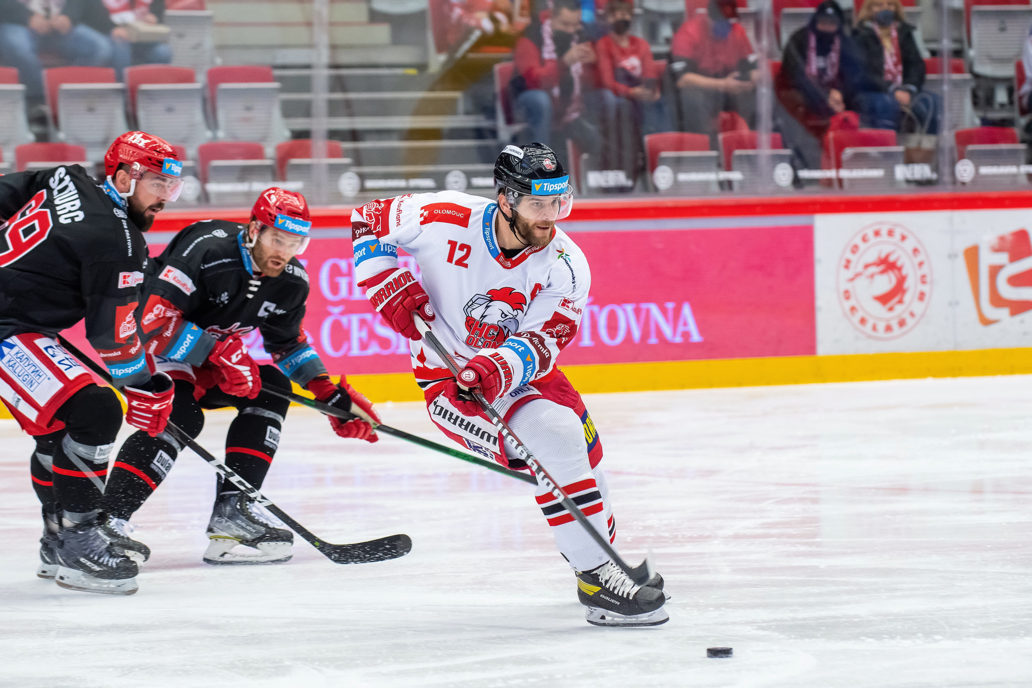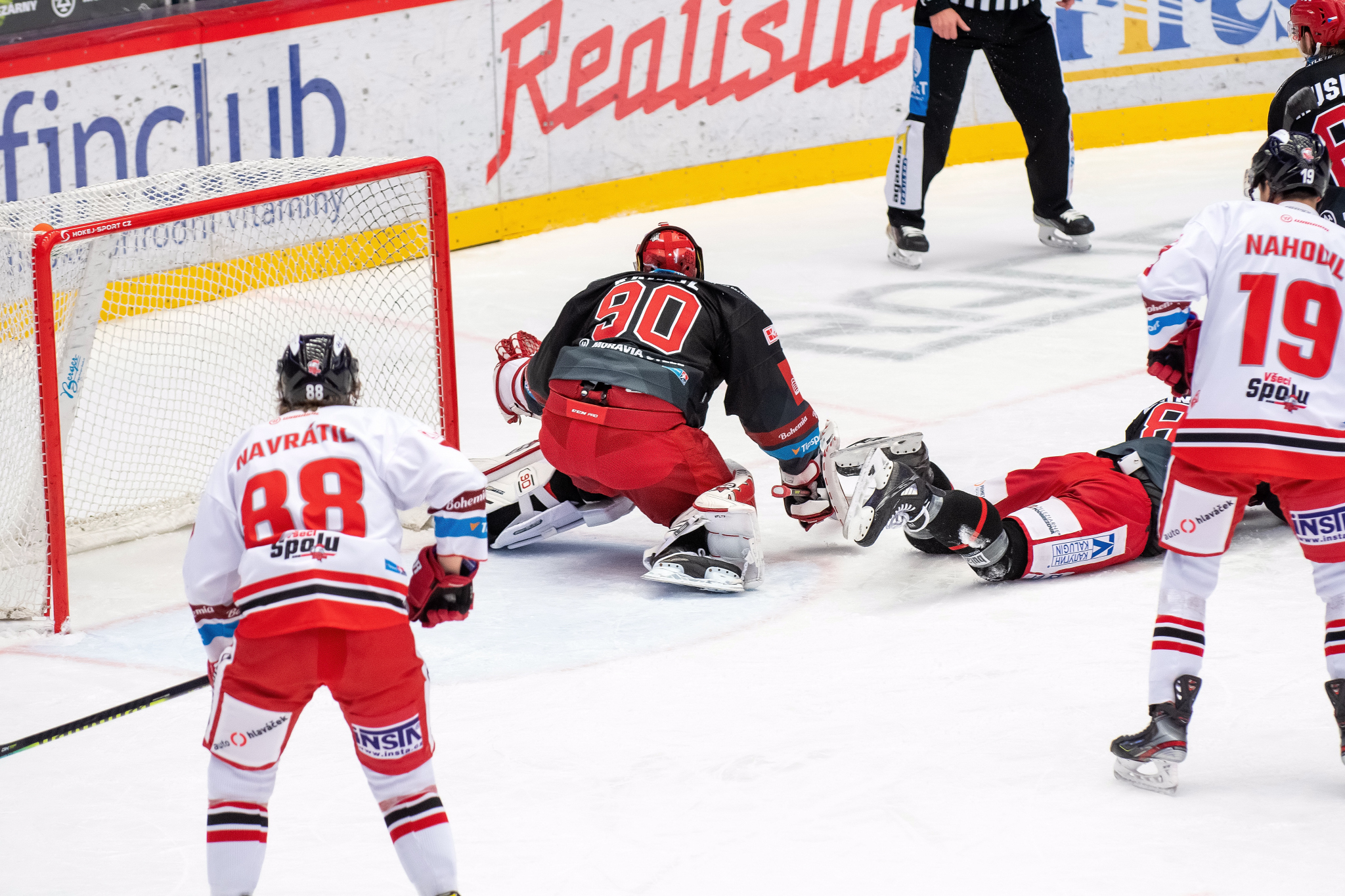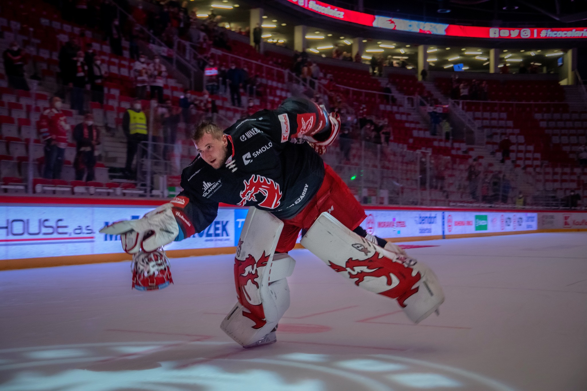 Milan Doudera střílí na Ondru Kacetla při rozbruslení