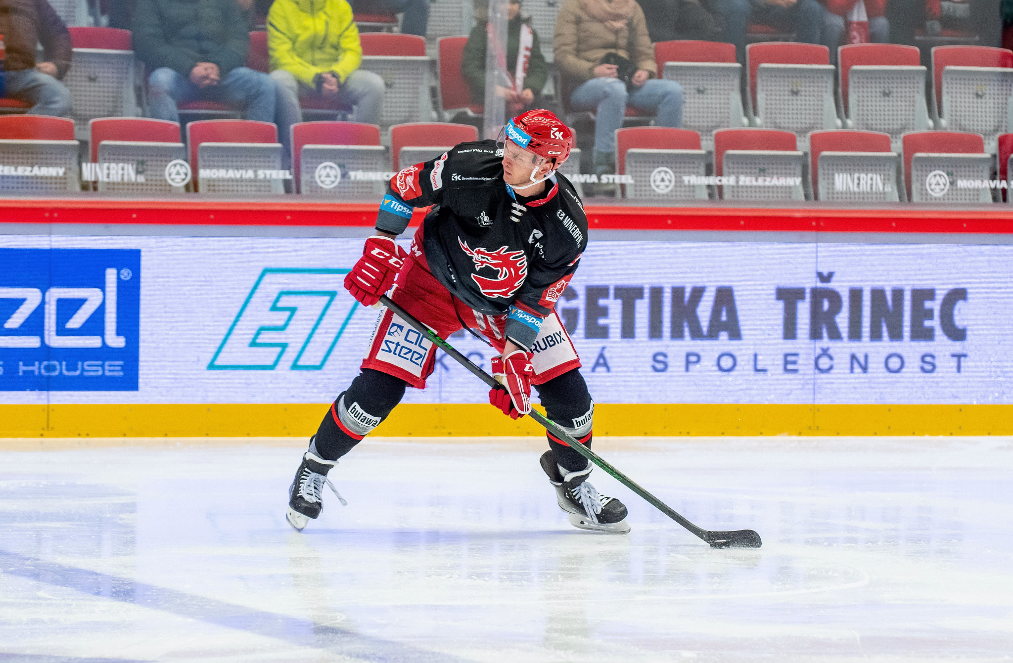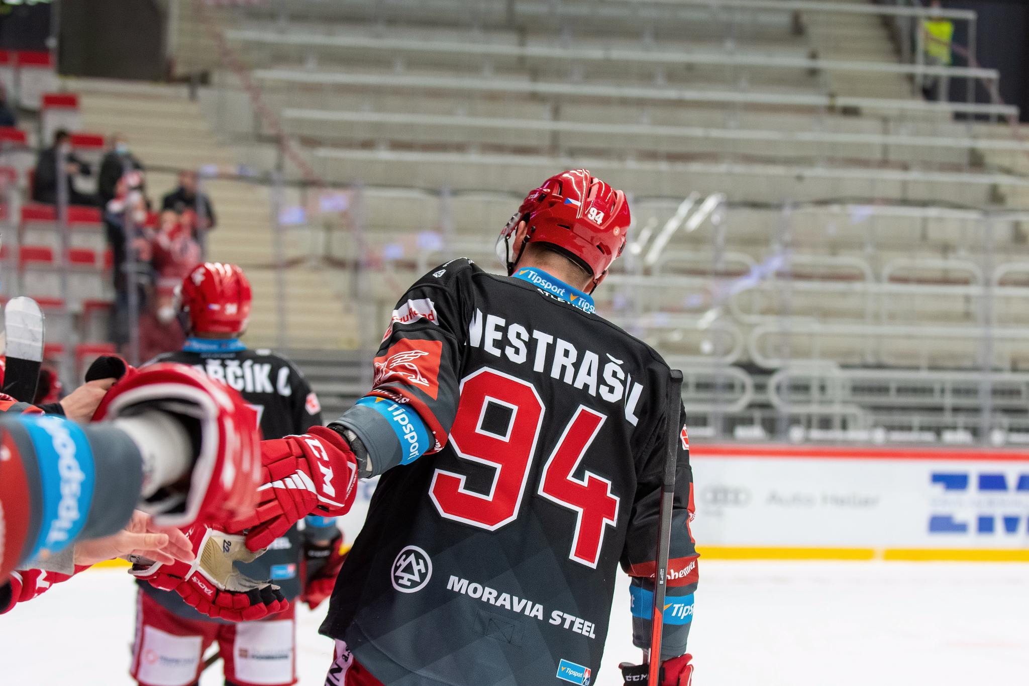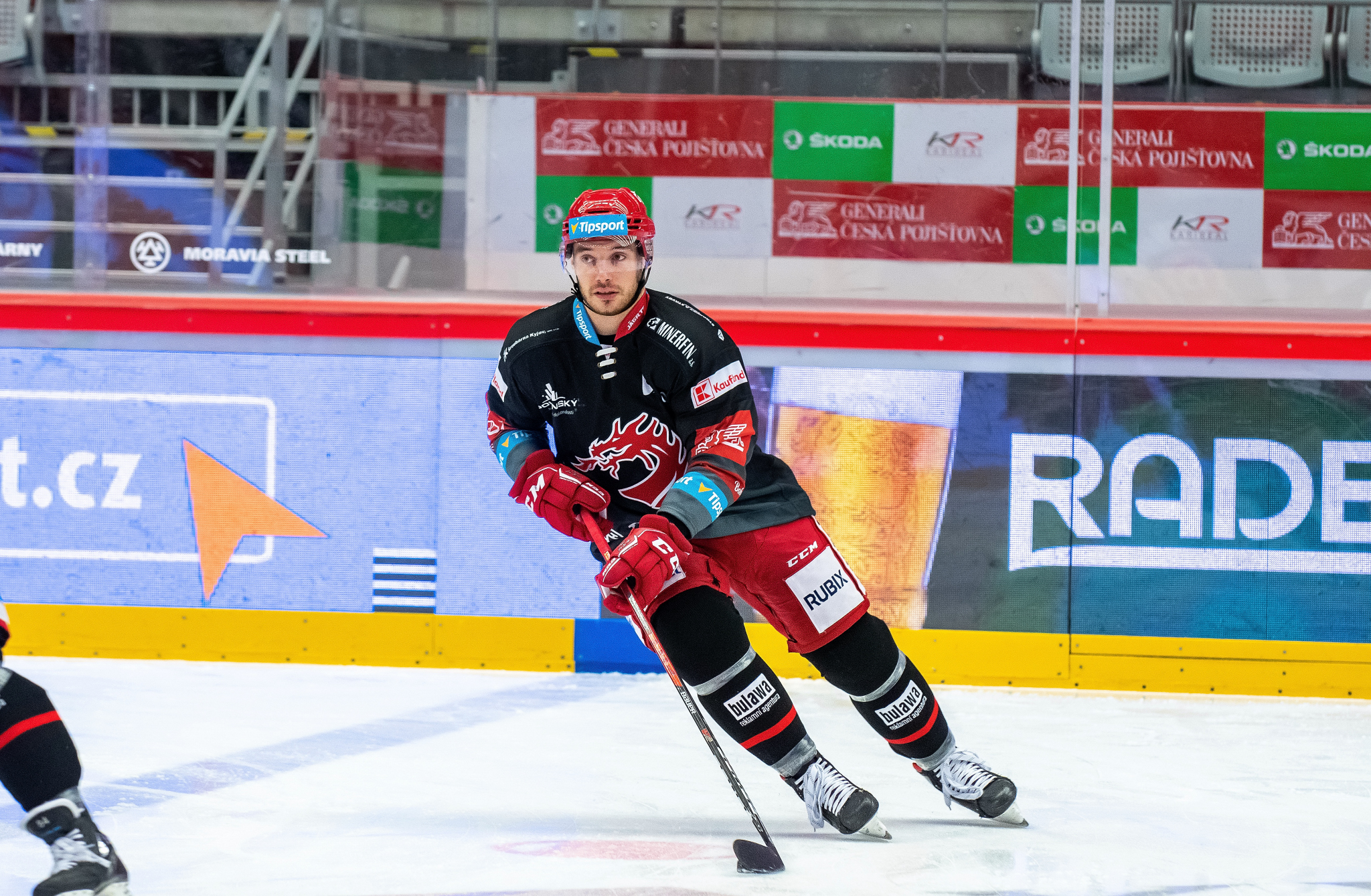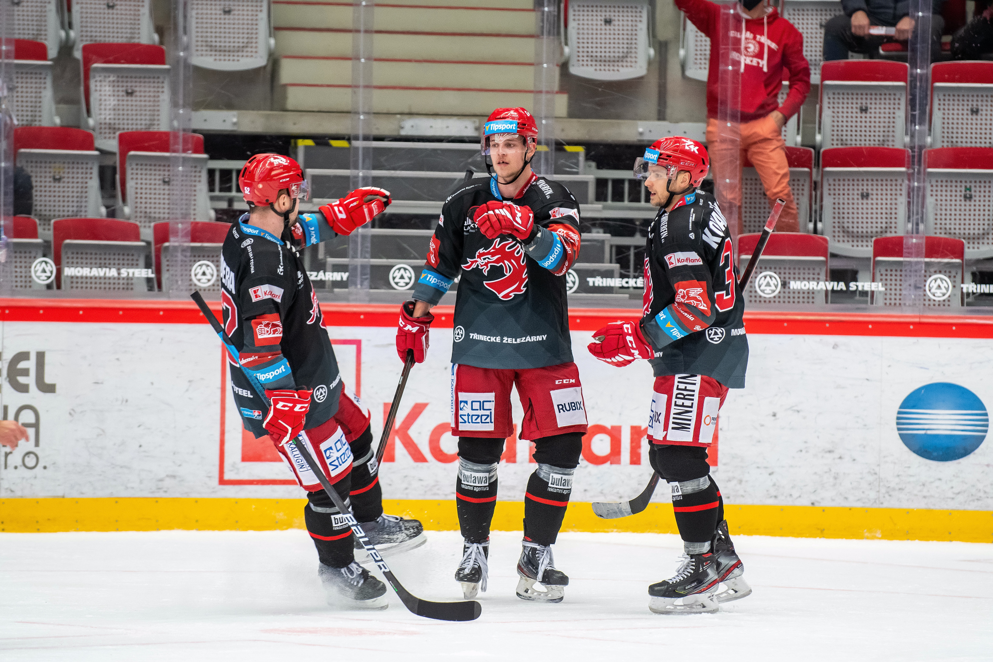 Milan Doudera střílí na Ondru Kacetla při rozbruslení