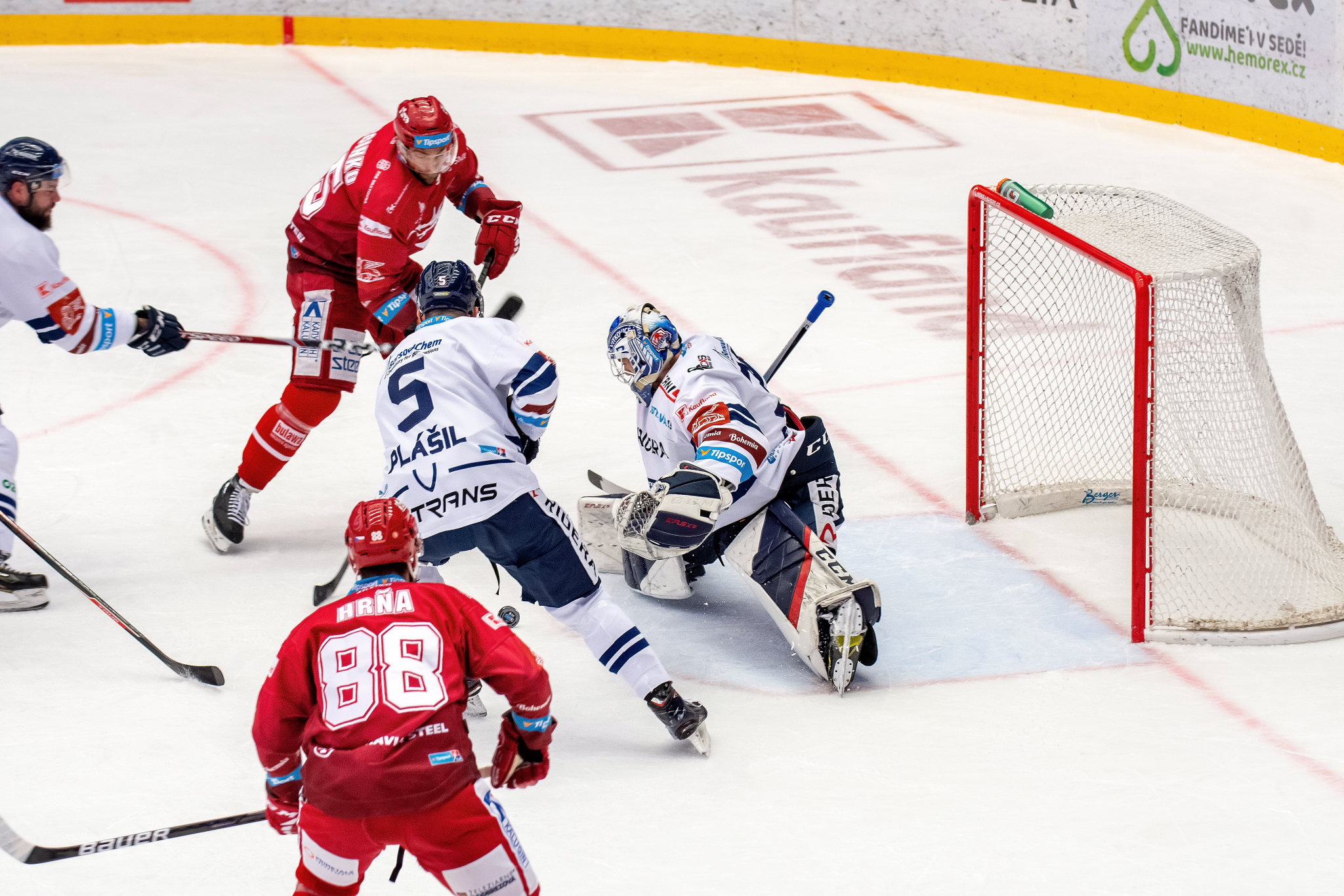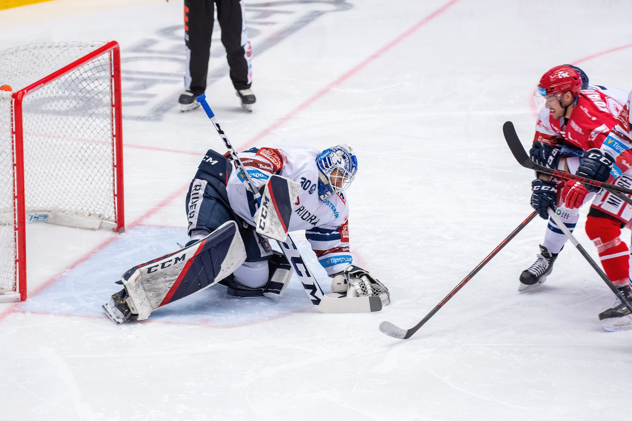 Erik Hrňa vyjíždí zpoza branky