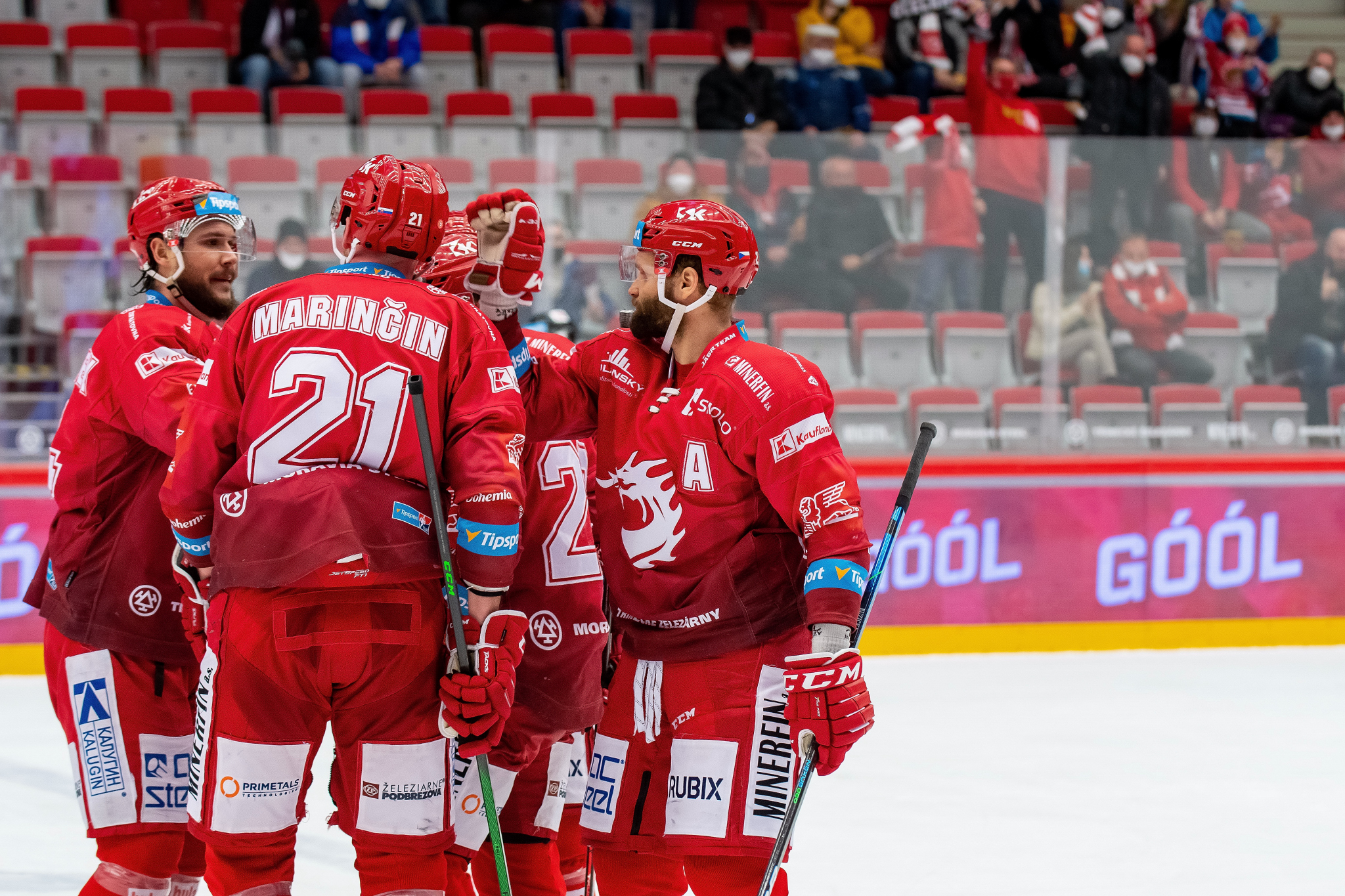 Petr Vrána se raduje z gólů Martina Marinčina