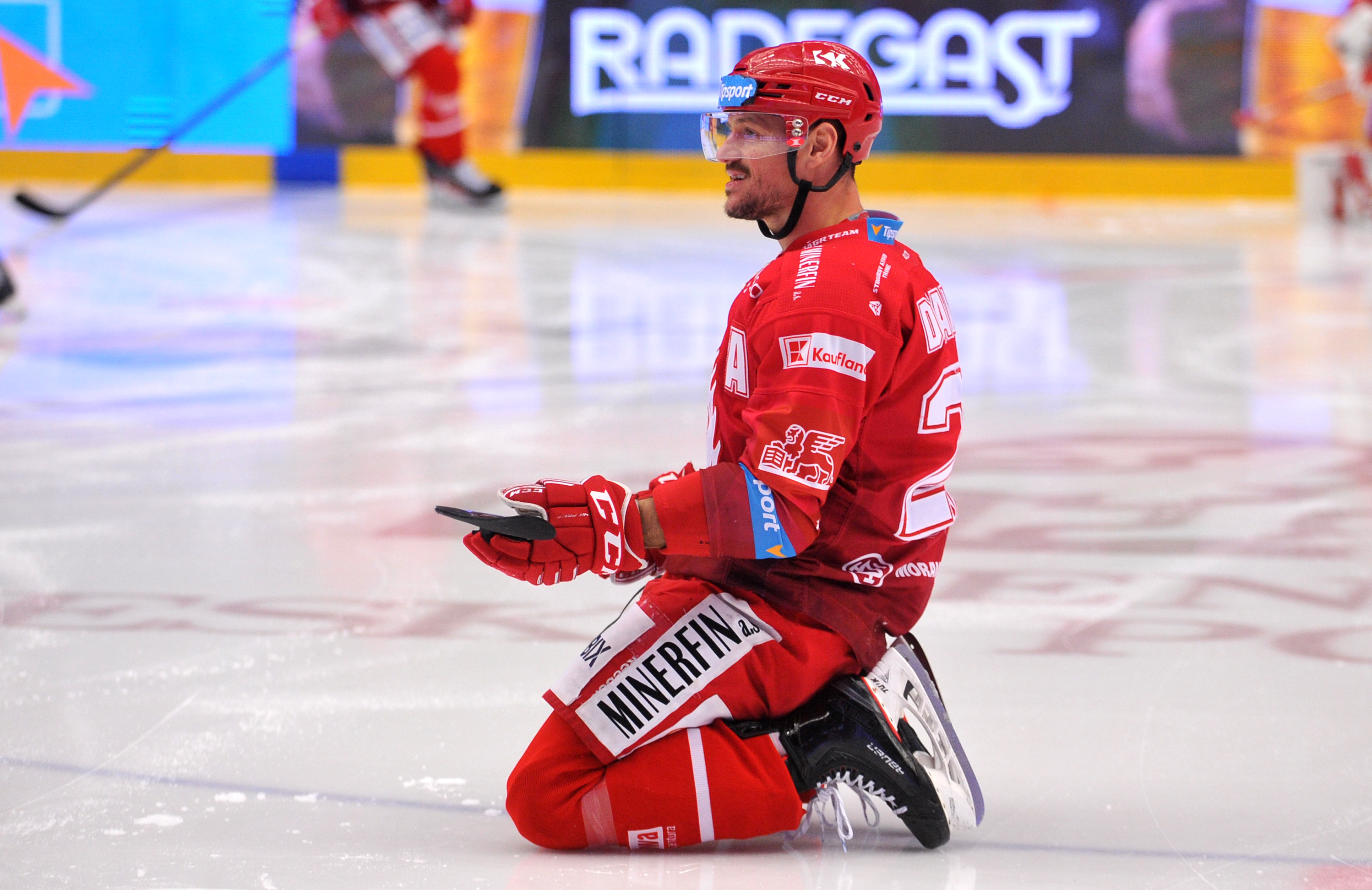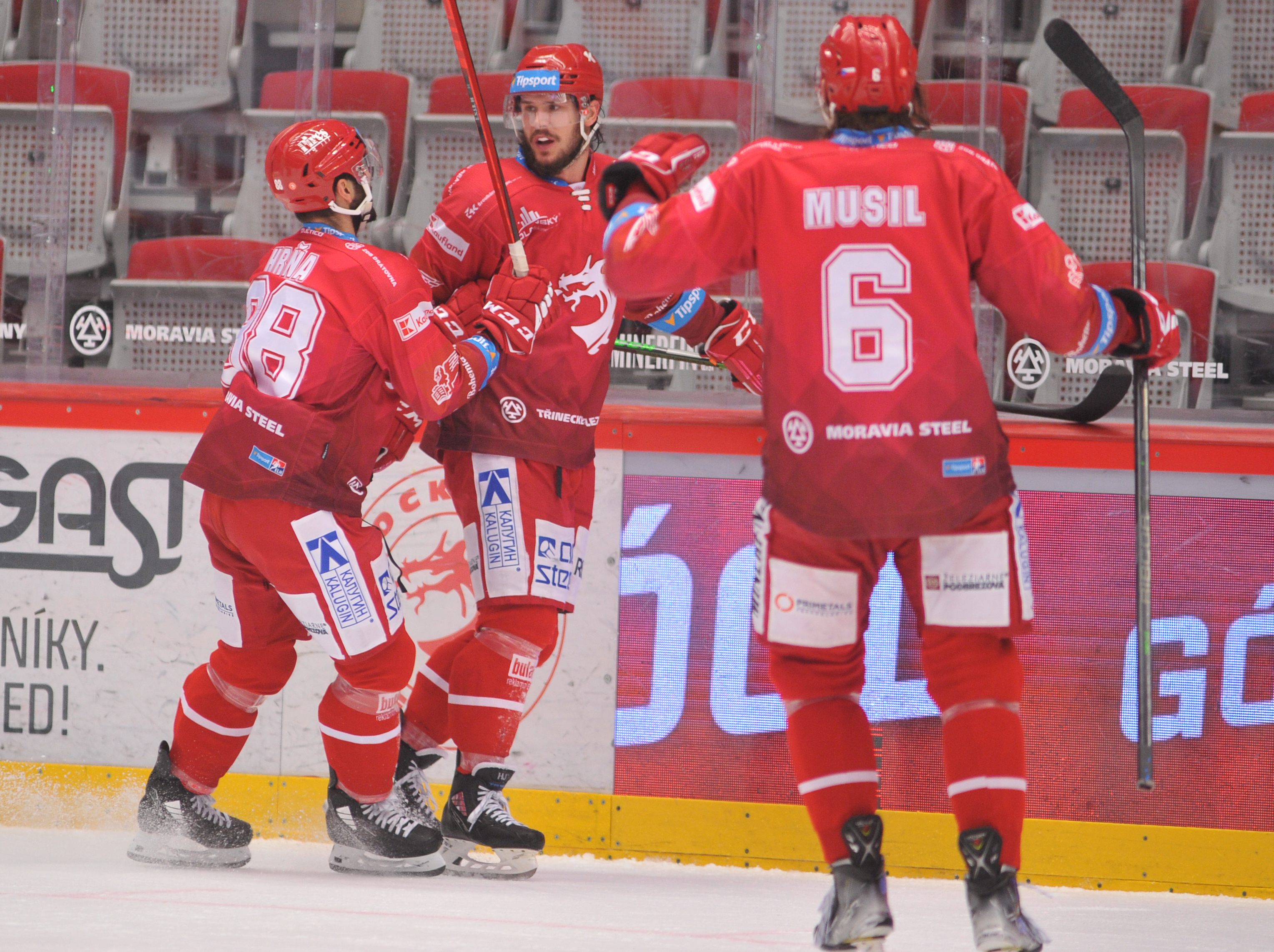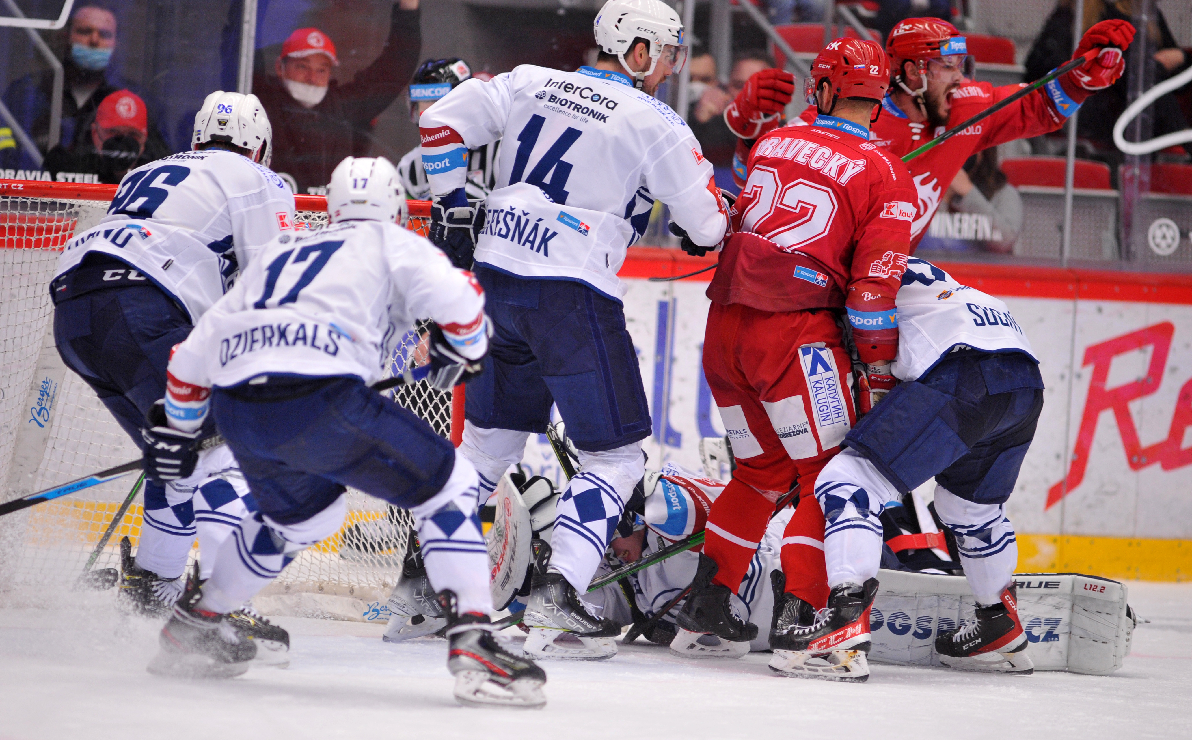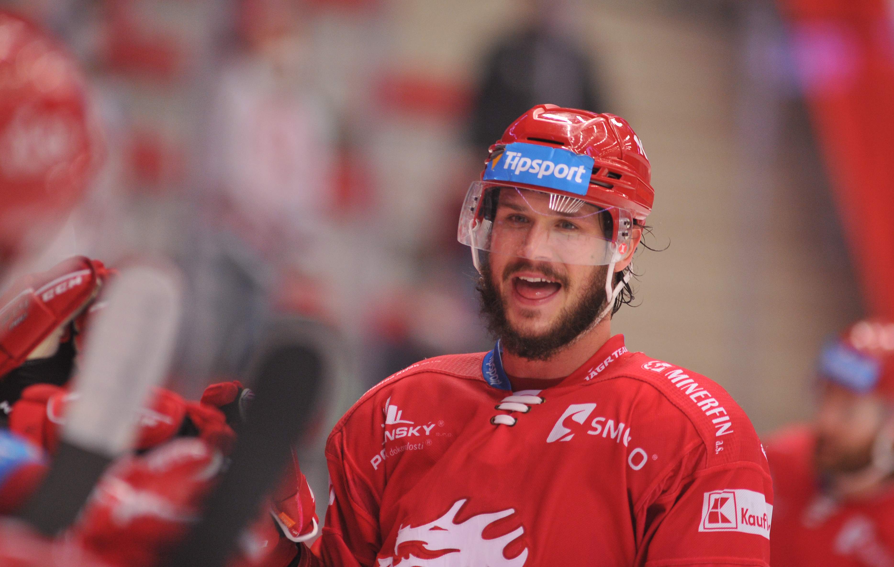Tomáš Kundrátek dotlačil puk do branky a jede slavit.