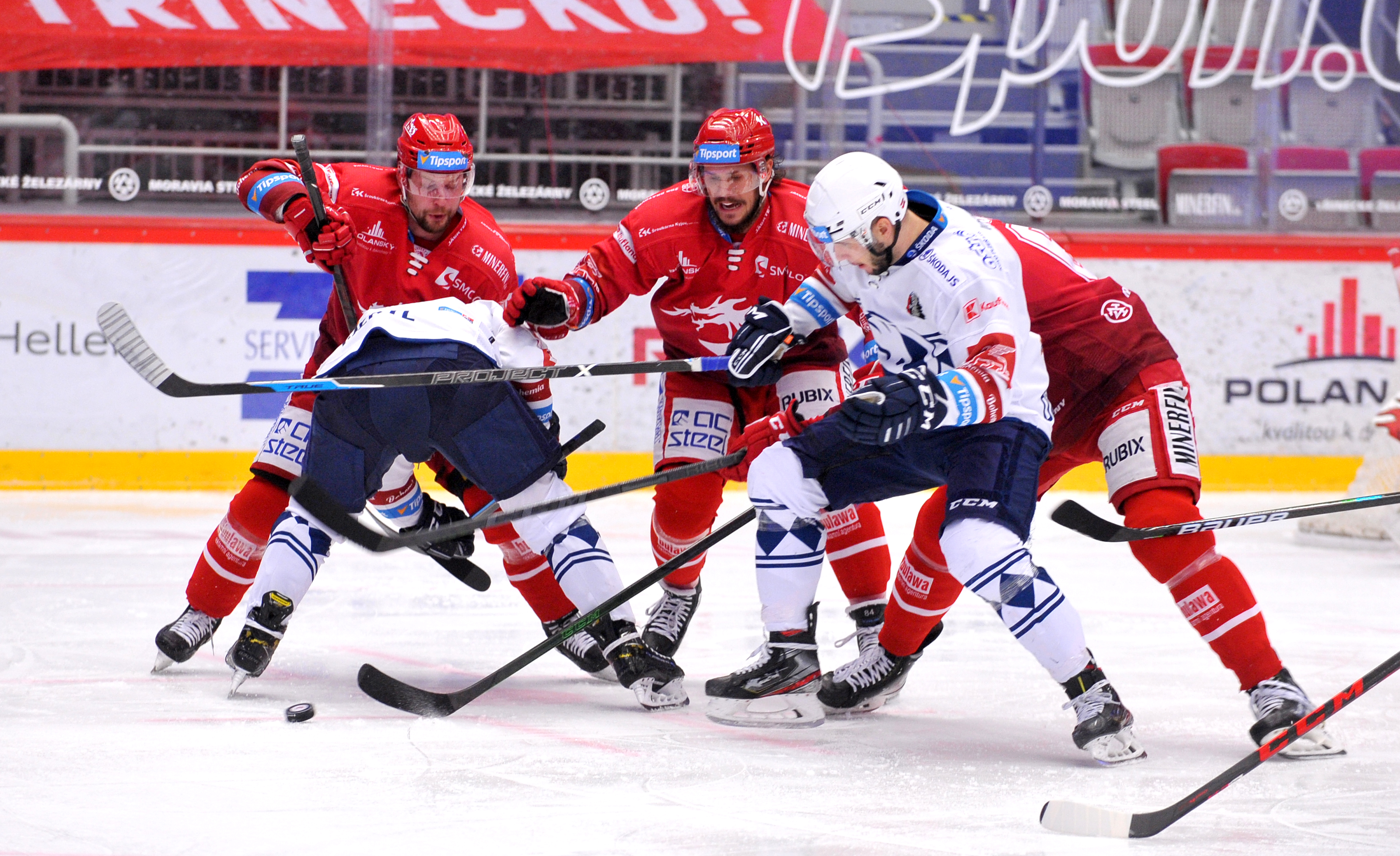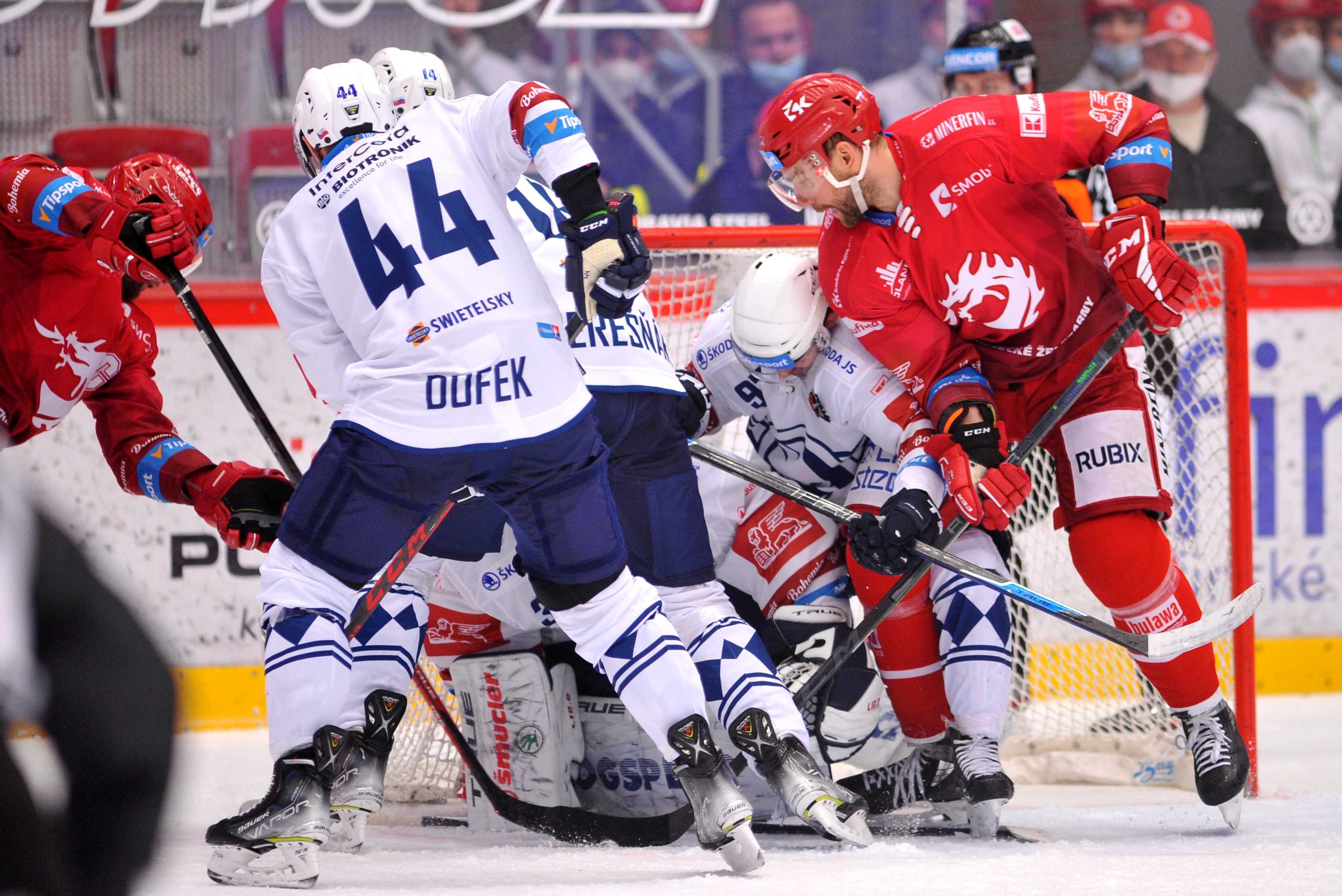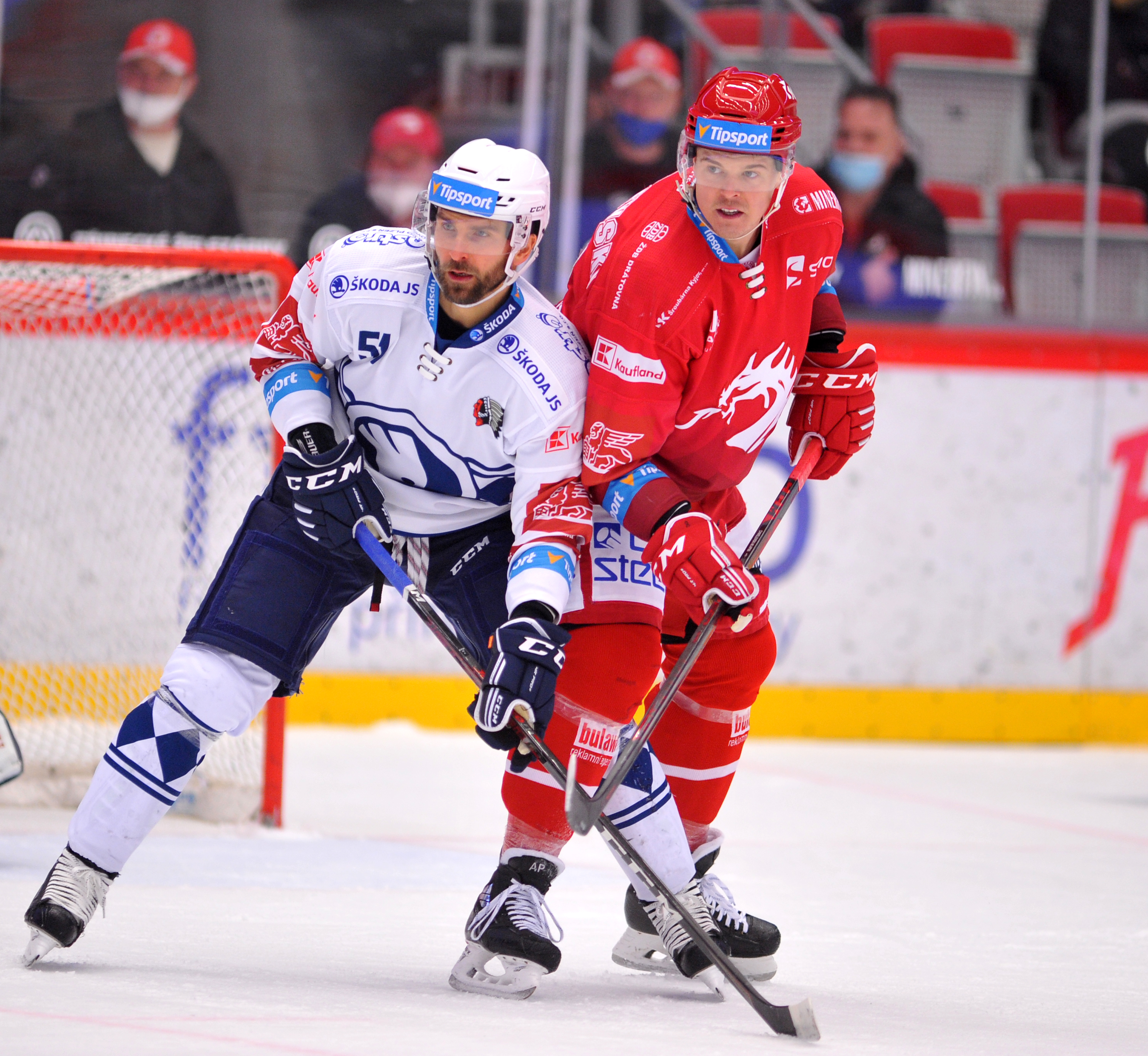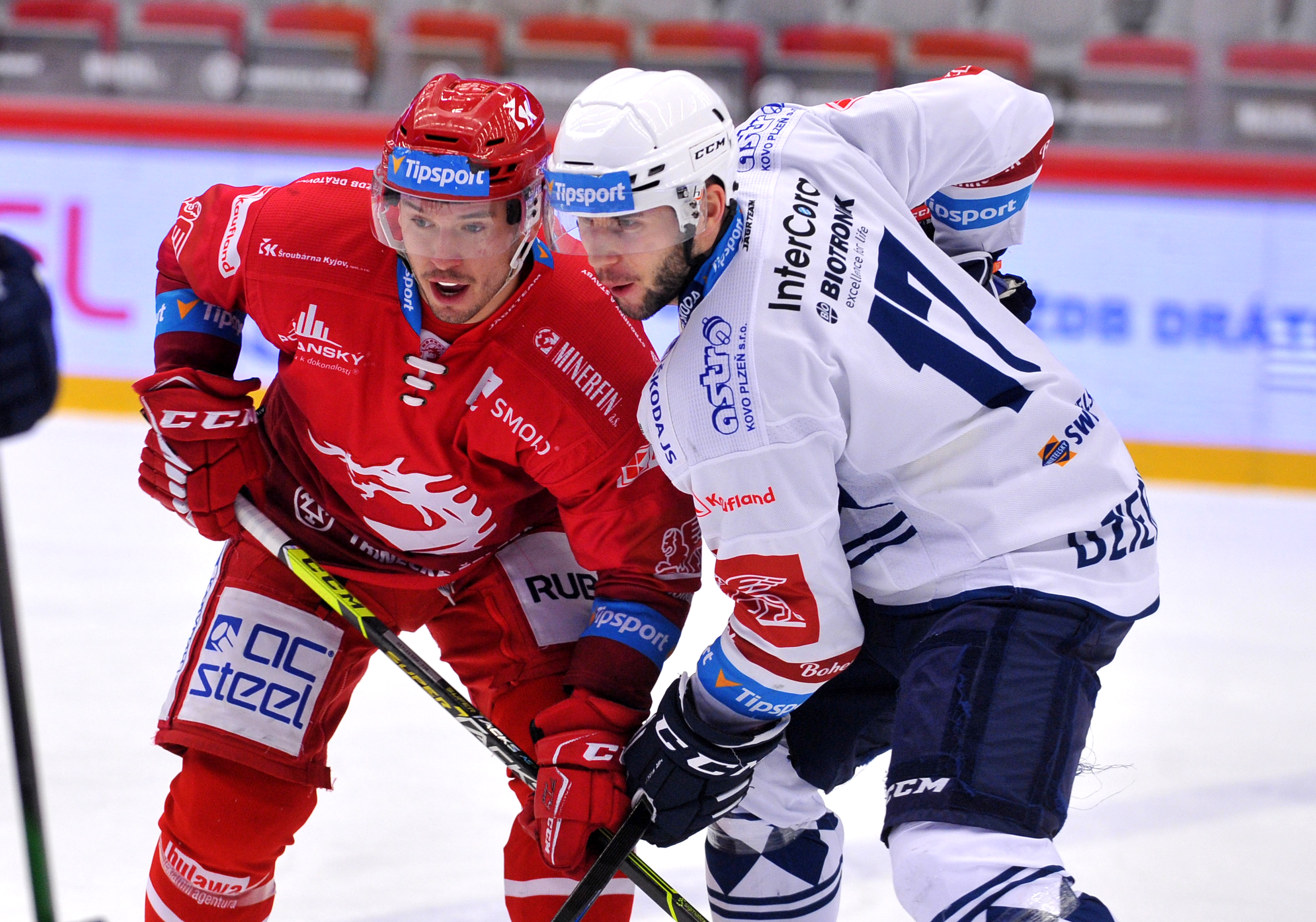 Petr Vrána a Tomáš Kundrátek bojuji o puk.