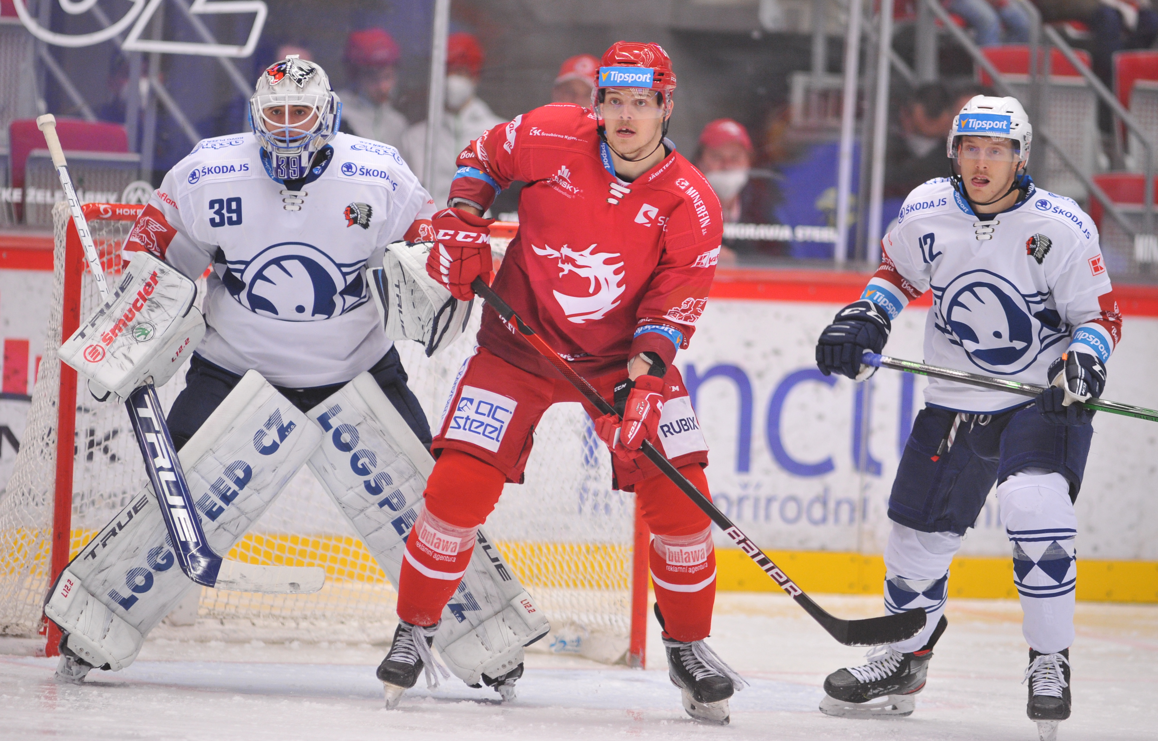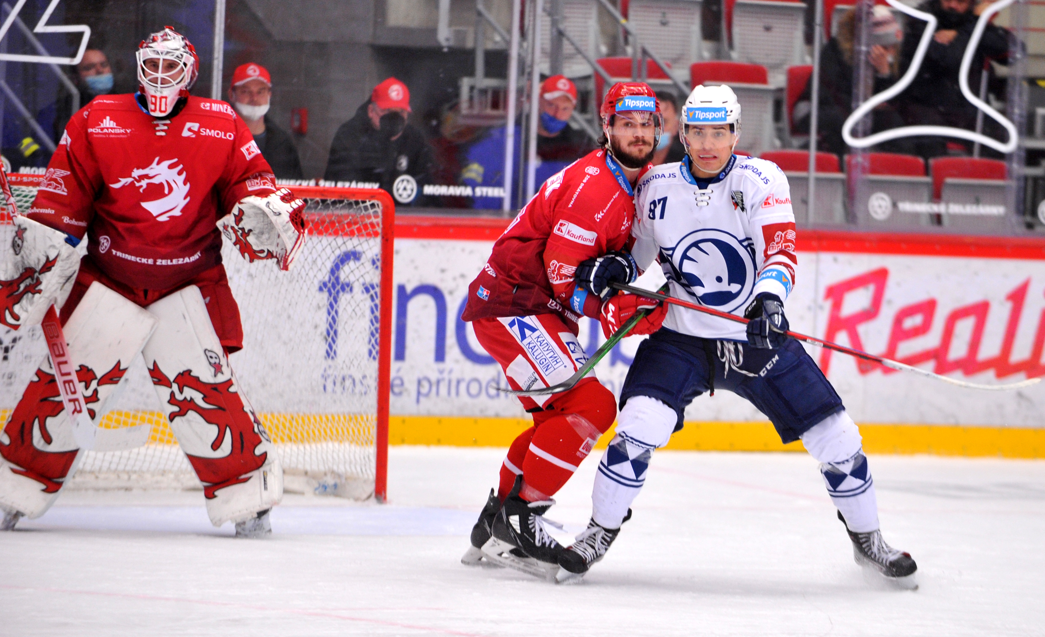 Jan Jaroměřský v souboji před třineckou brankou.