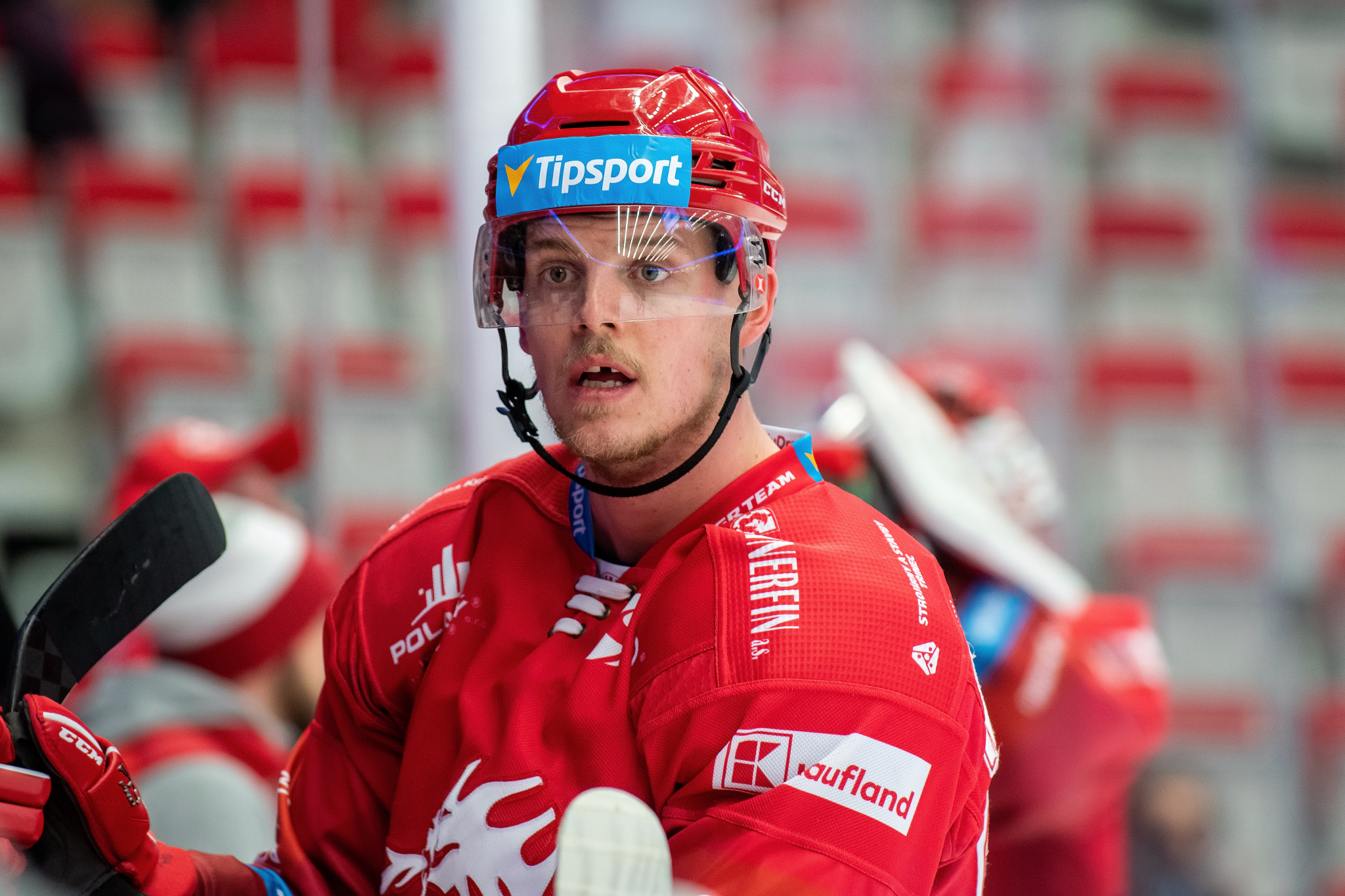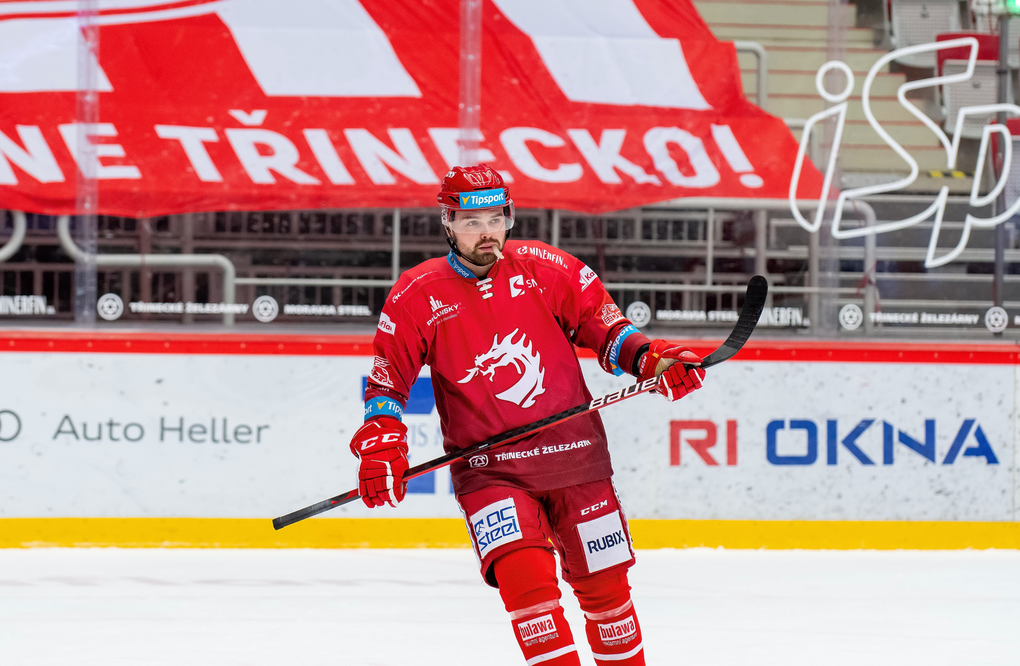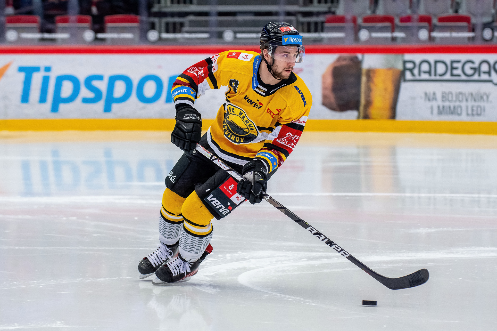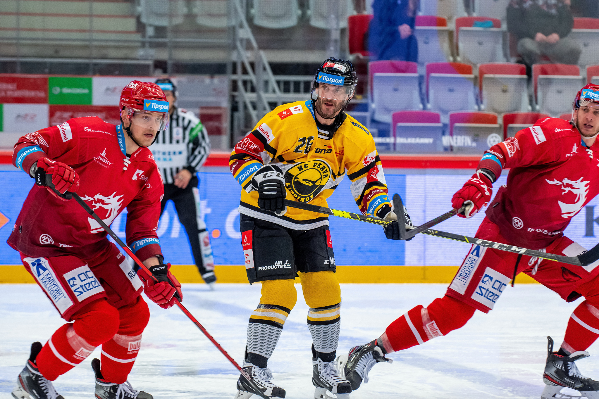 Petr Vrána sleduje soupeře před vhozením buly
