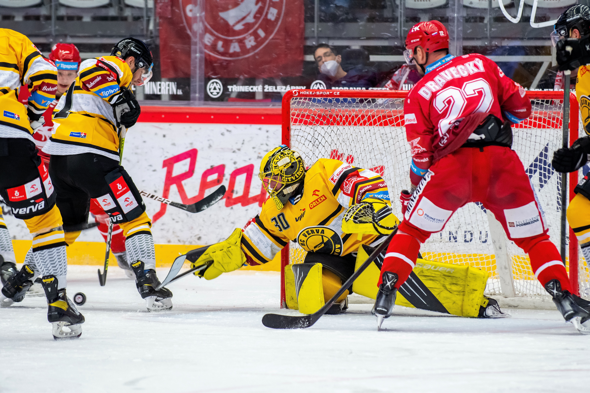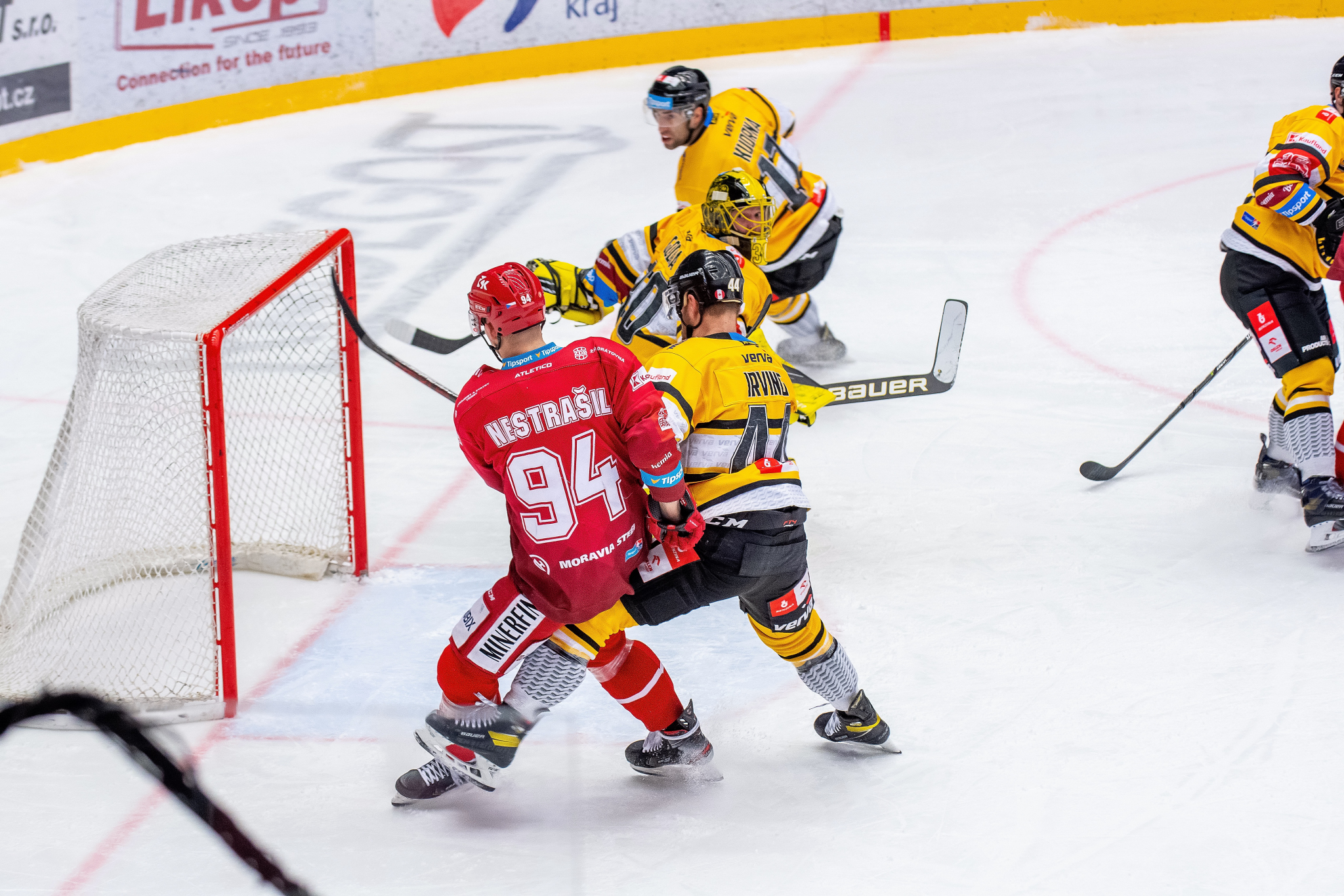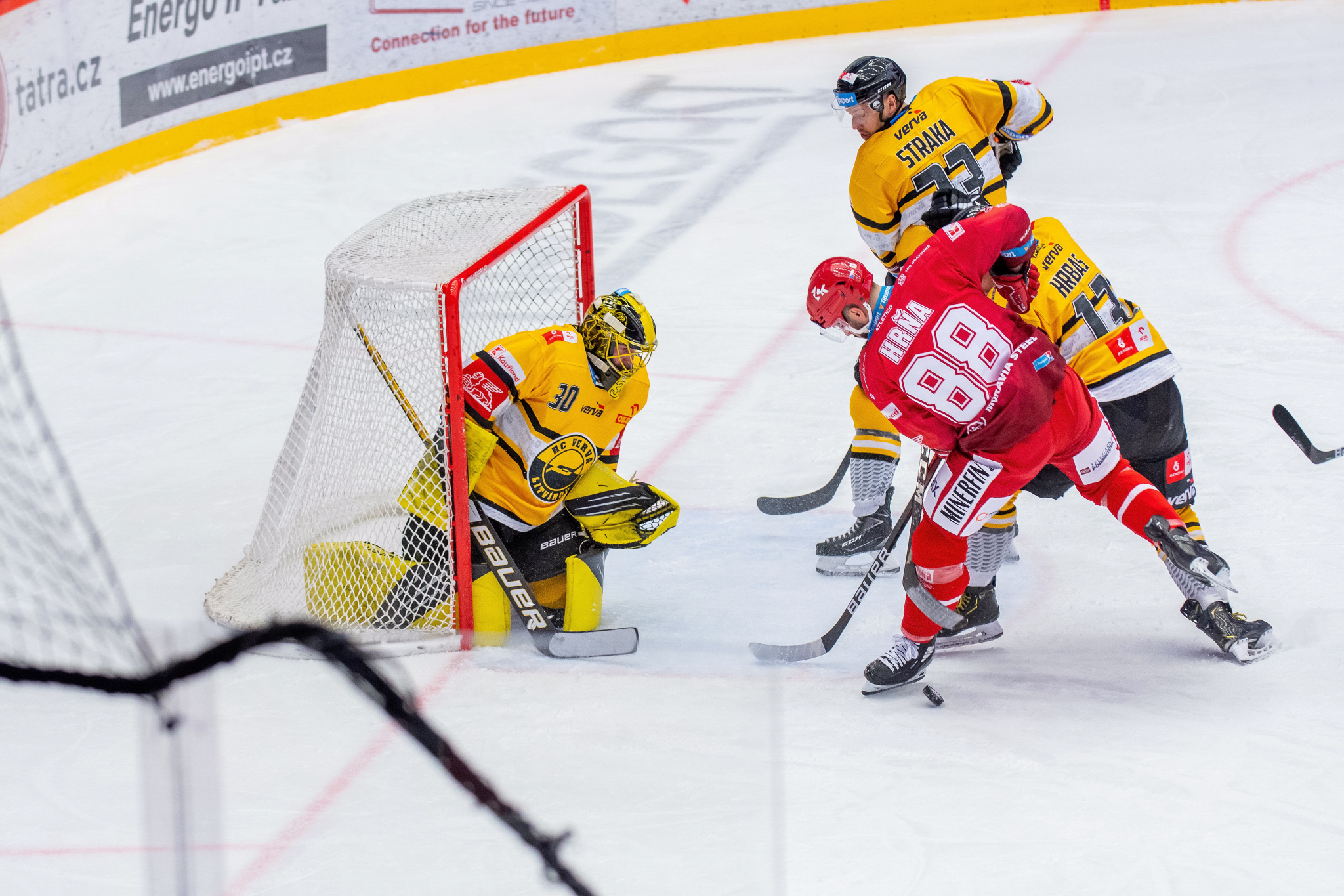 Erik Hrňa se rve před brankou