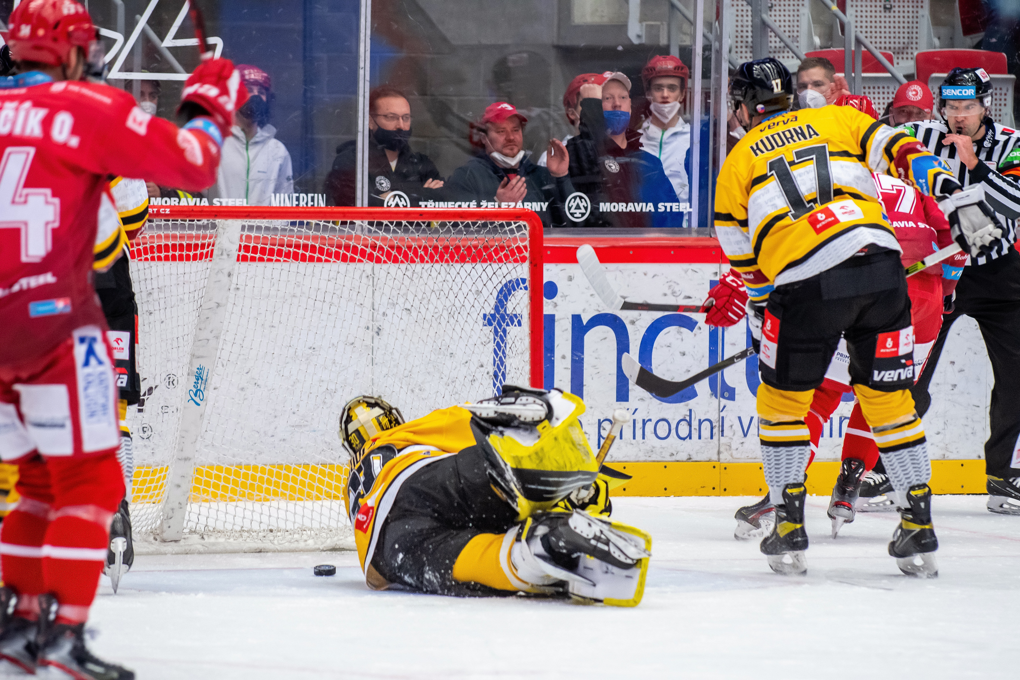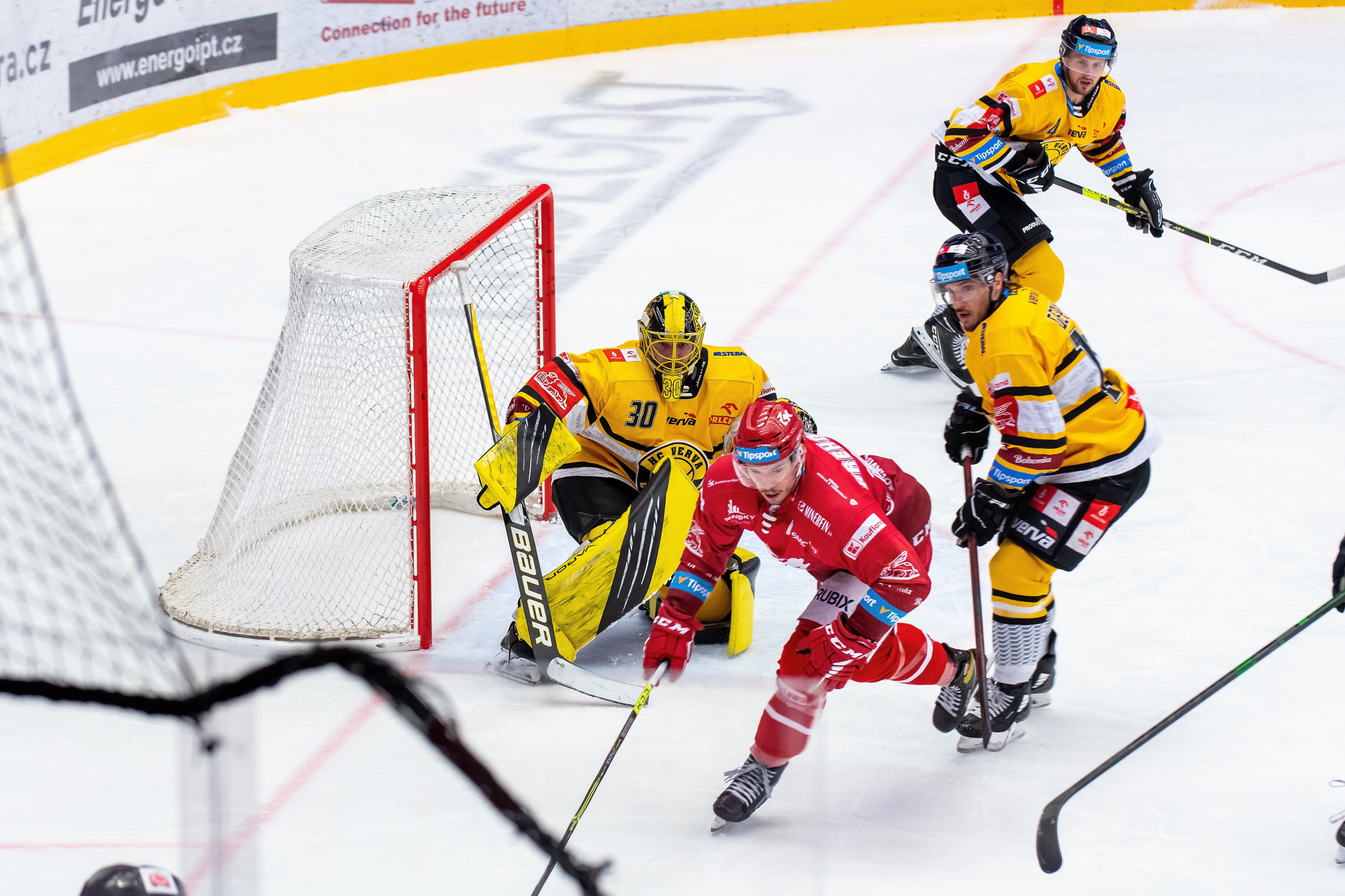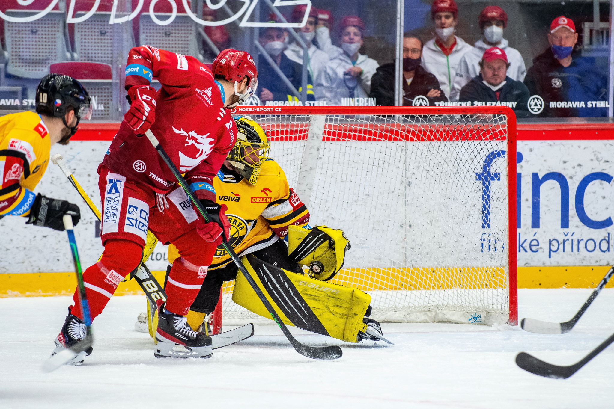 Erik Hrňa se rve před brankou