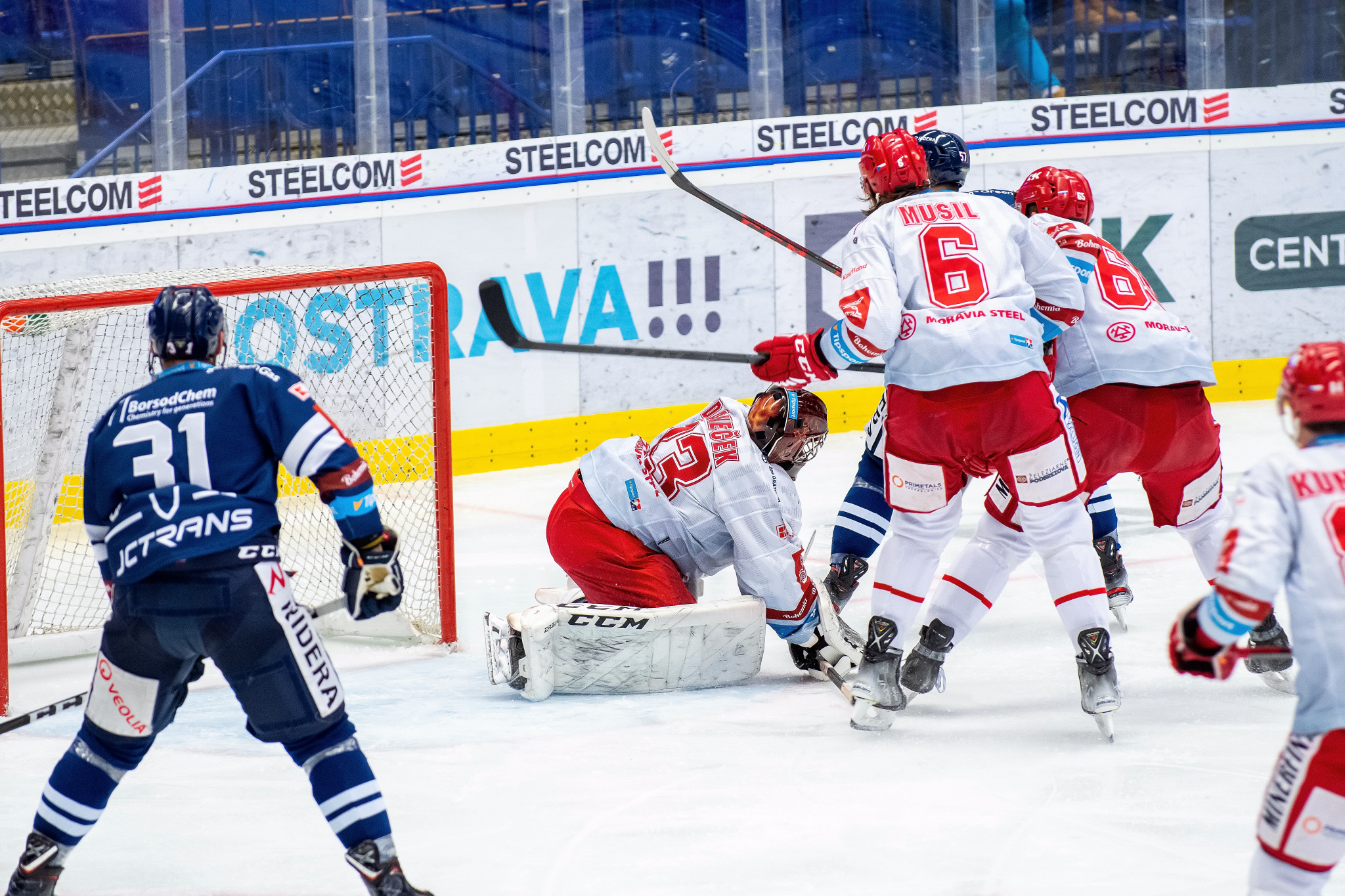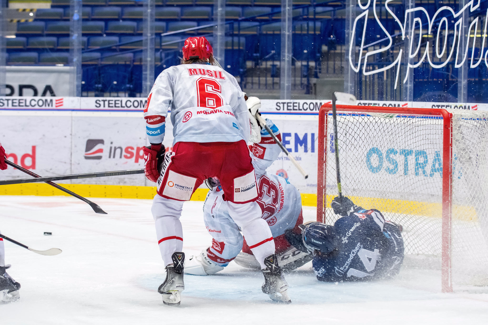 David Musil s Tomášem Marcinkem čistí prostor před brankou